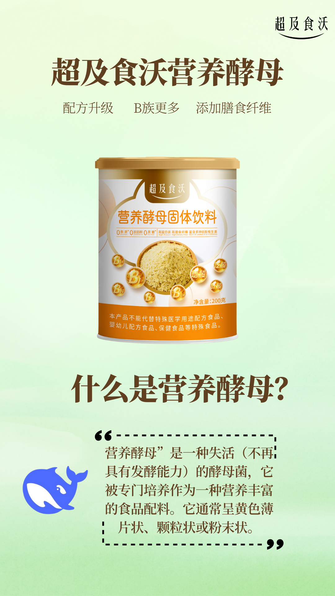 【超及食沃上新】营养酵母粉200g 天然维B 高纤高蛋白 醇香即食美味