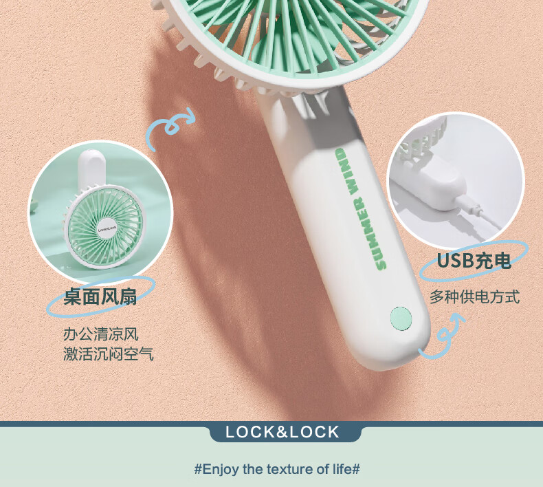 乐扣乐扣 云朵小风扇伞组合薄荷绿2件套 ETM871GRNS02FU