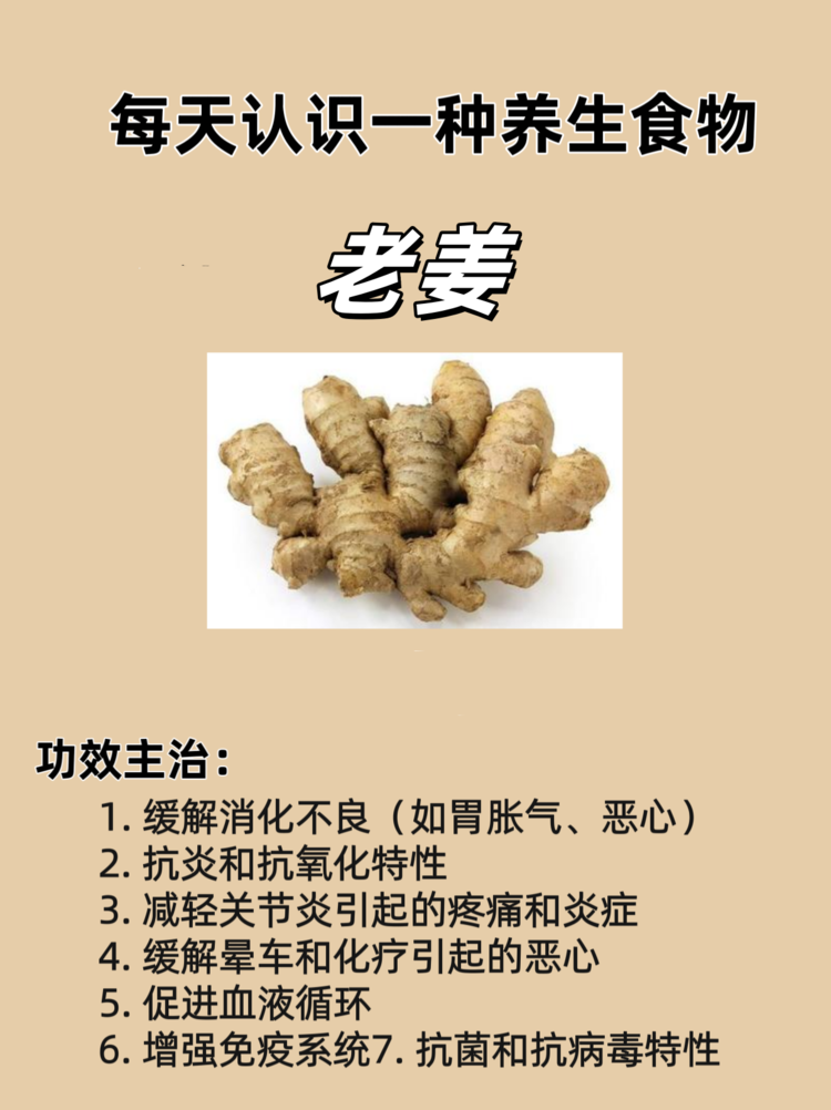 ✅温中止呕:老姜能温胃散寒,和中止呕,对于胃寒呕吐、脘腹冷痛等症状有效果