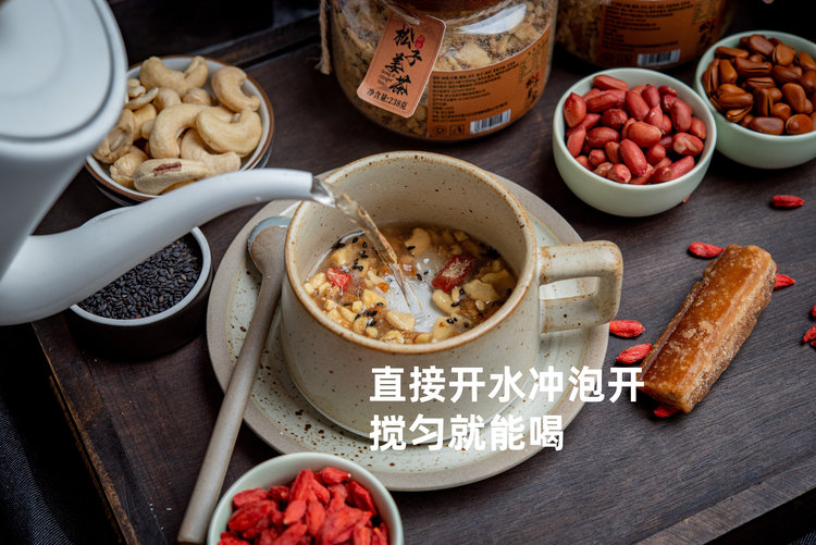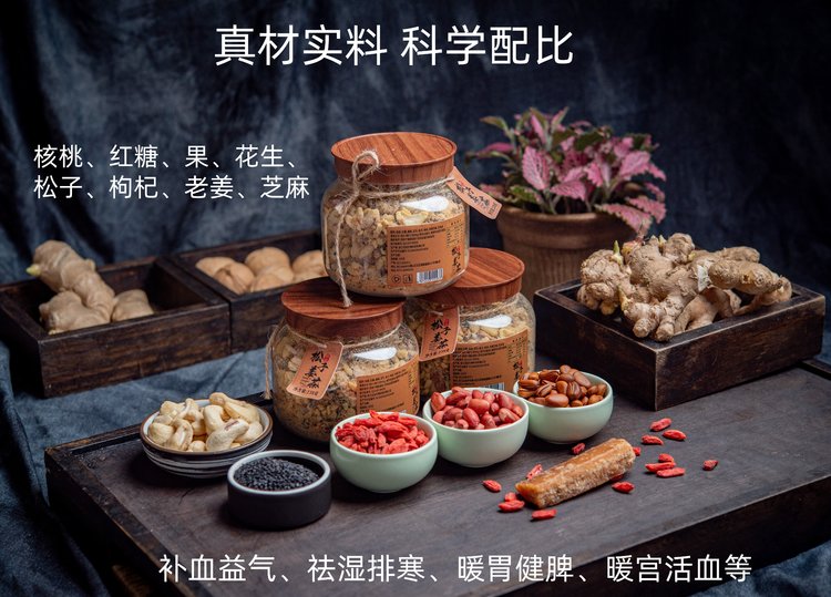 松子、核桃、红糖、腰果、花生、枸杞、老姜芝麻、玉米油