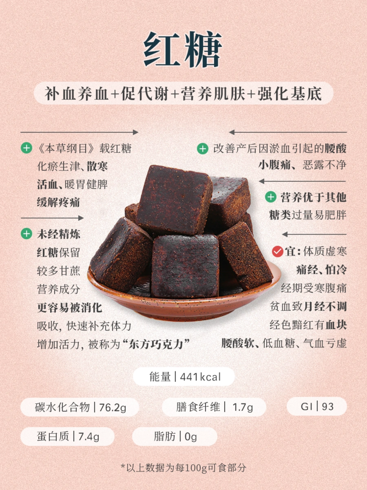 适用场景:红糖性温,可驱散体内寒气,缓解手脚冰凉、胃寒腹痛。中医经典《本草纲目》记载其“利脾缓肝,补中益气”。