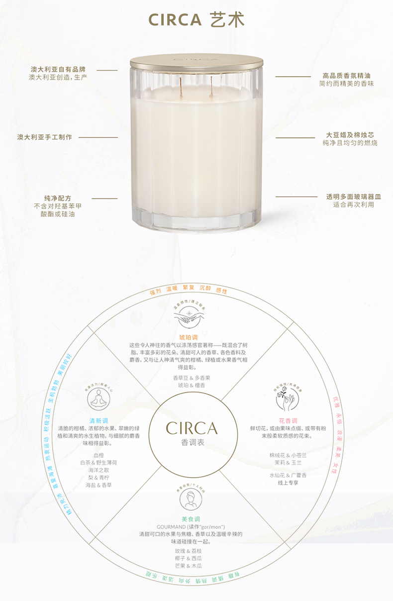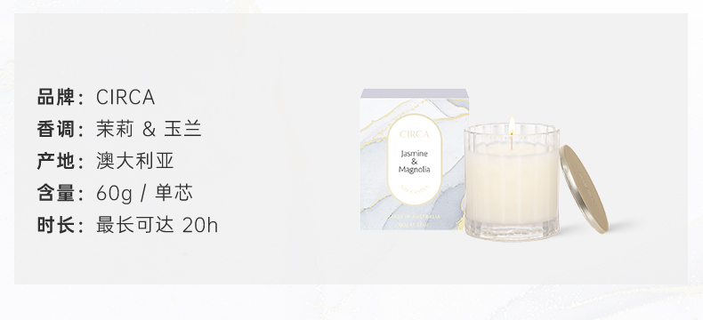 Circa茉莉&玉兰350g蜡烛澳大利亚手作大豆香氛蜡烛礼盒轻奢礼物