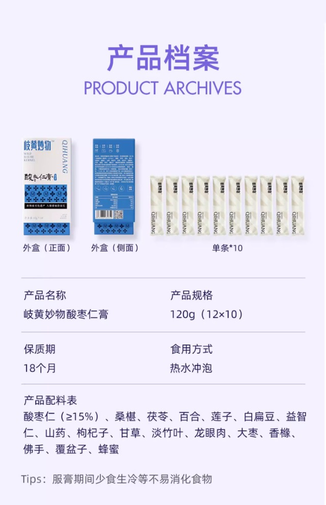 岐黄妙物酸枣仁膏古方百合茯苓茶膏方非褪黑素氨基丁酸正品