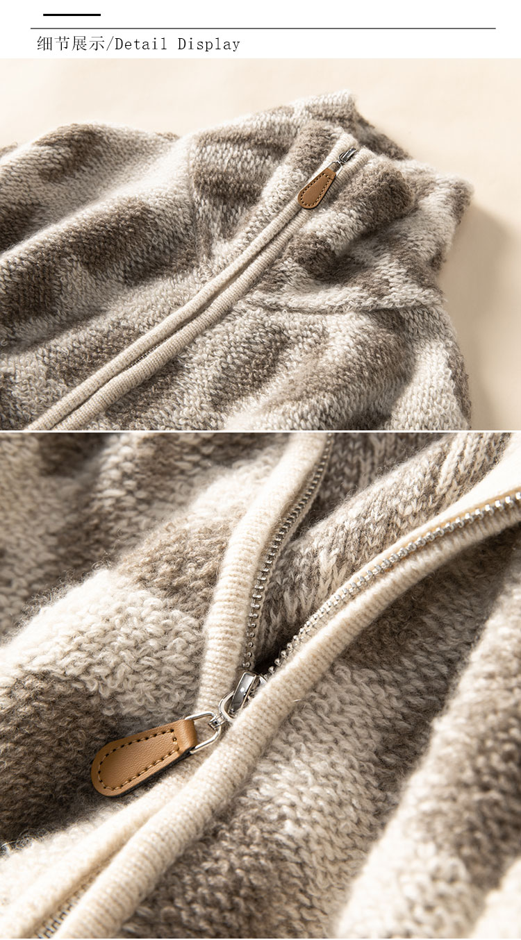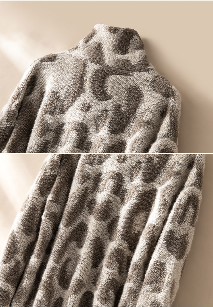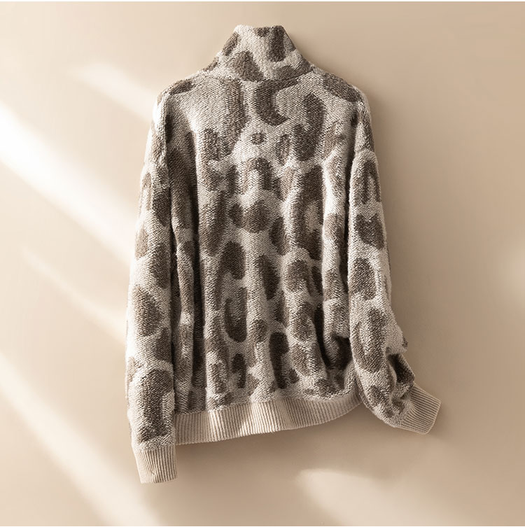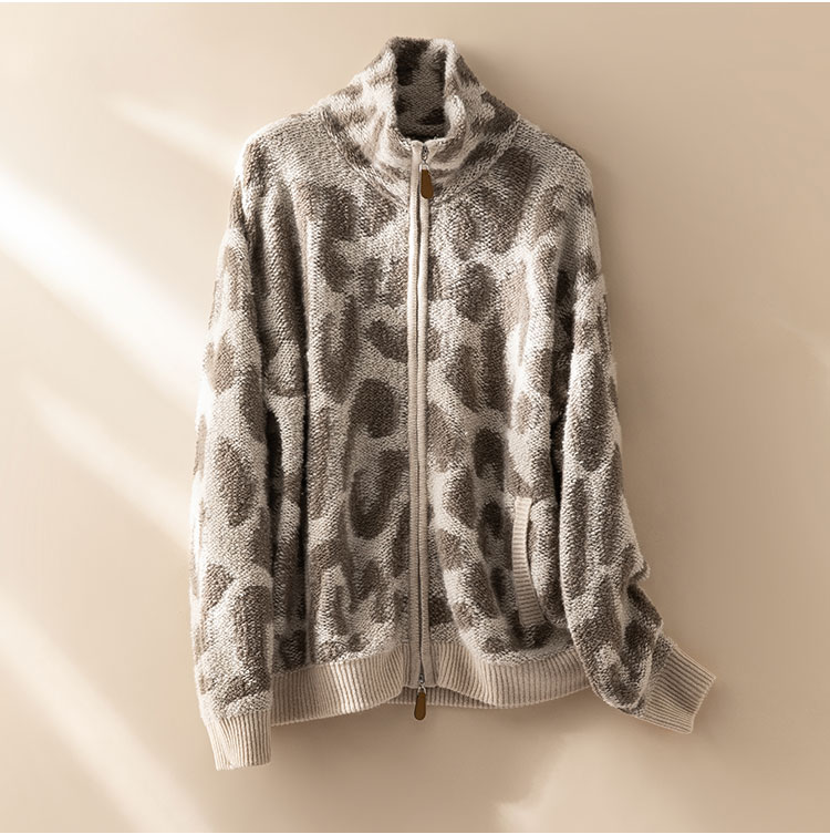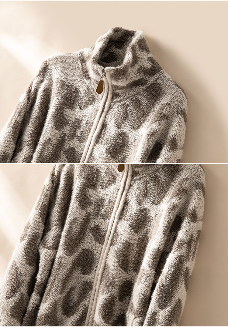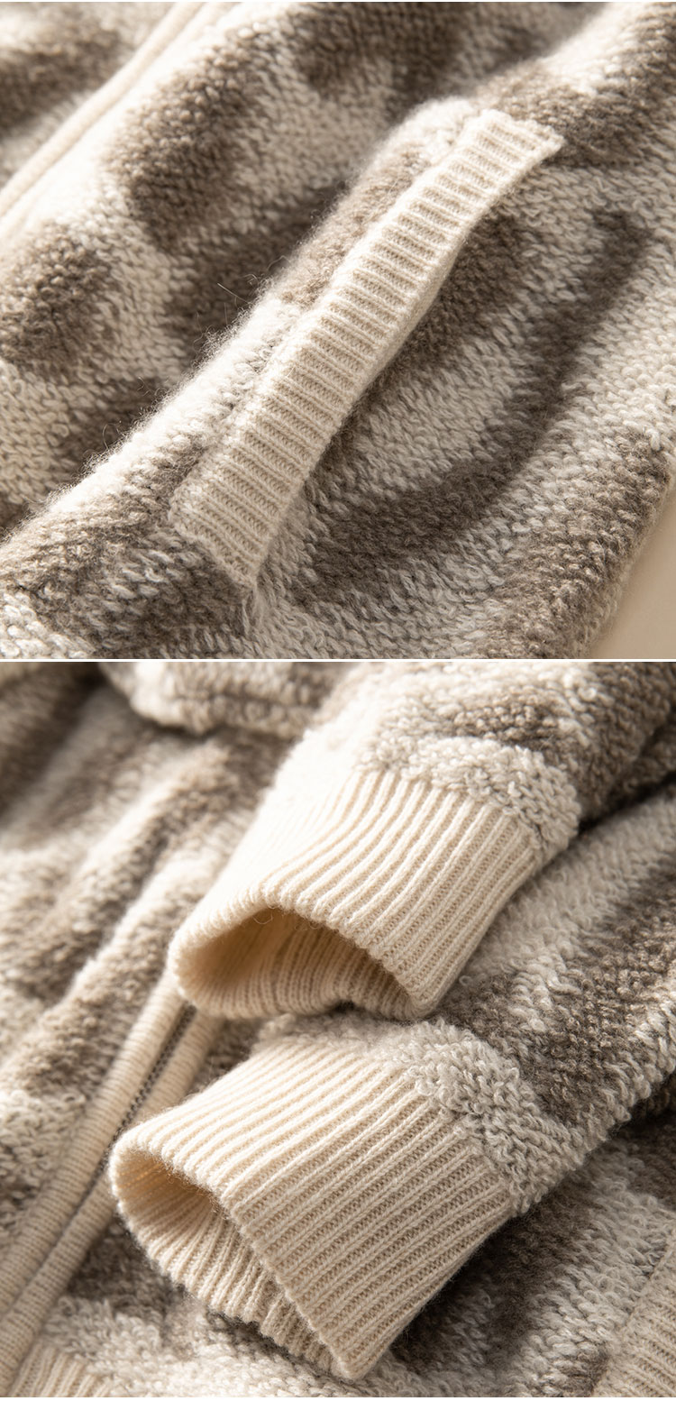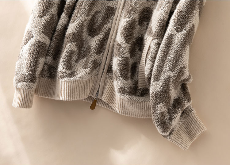 100%Baby小山羊绒~经典豹纹翻领拉链加厚外套女BABY260521