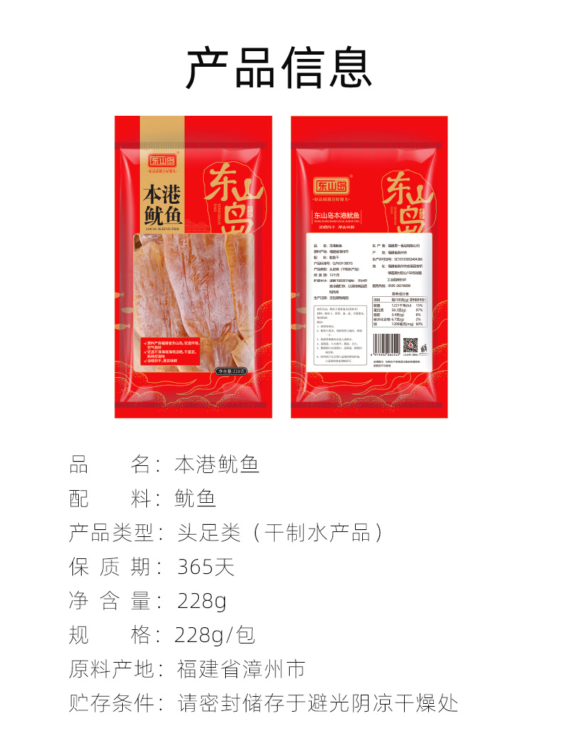 东山岛本港鱿鱼228g【海鲜干货】