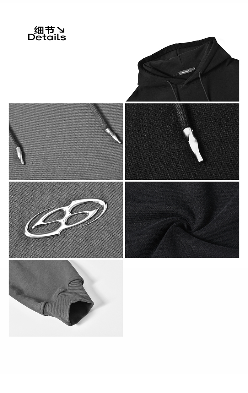 NUTH“凝聚空气”黑色宽松百搭oversize连帽卫衣宽松拉链厚外套(发货时间同步天猫)