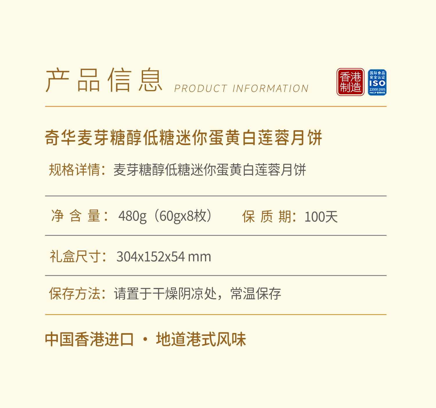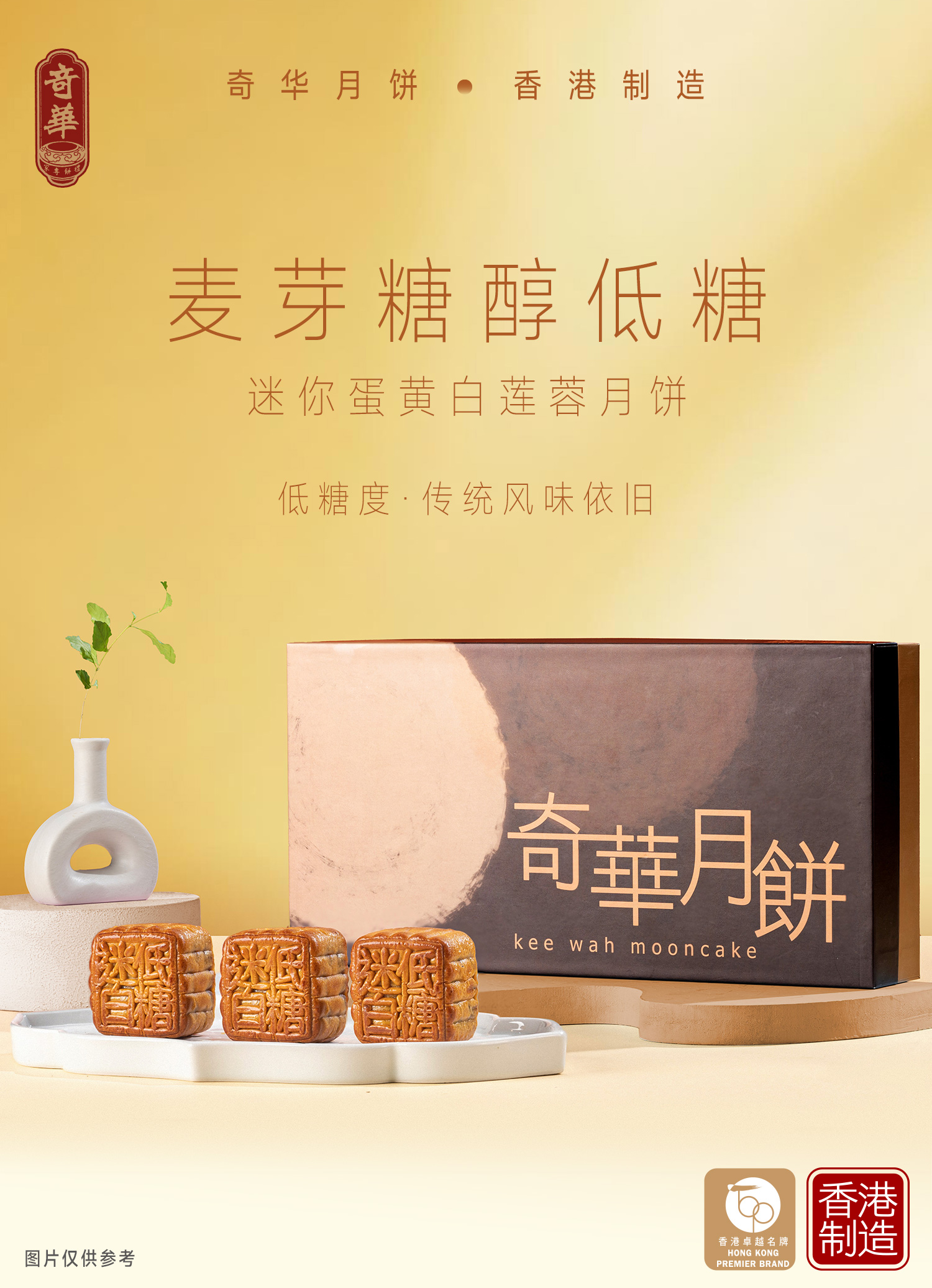 【麦芽糖醇低糖迷你蛋黄白莲蓉月饼】中国香港奇华饼家广式中秋节送礼糕点特产
