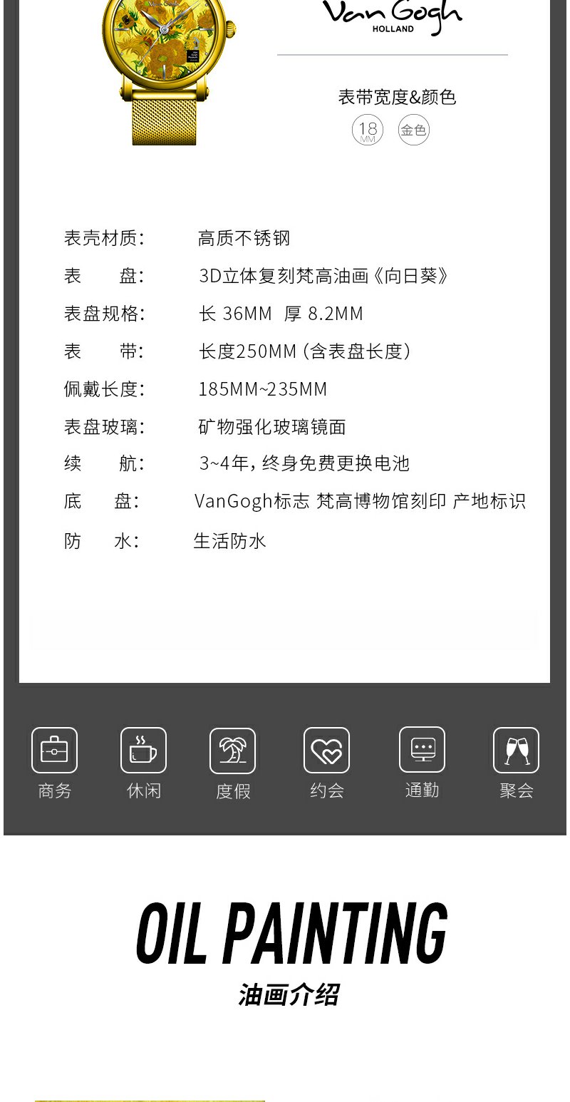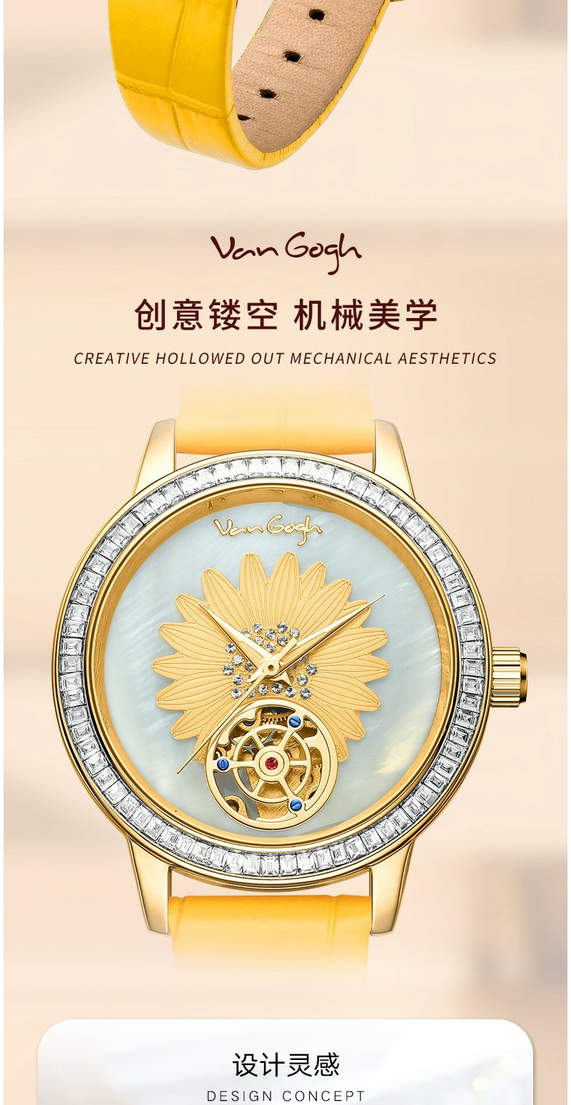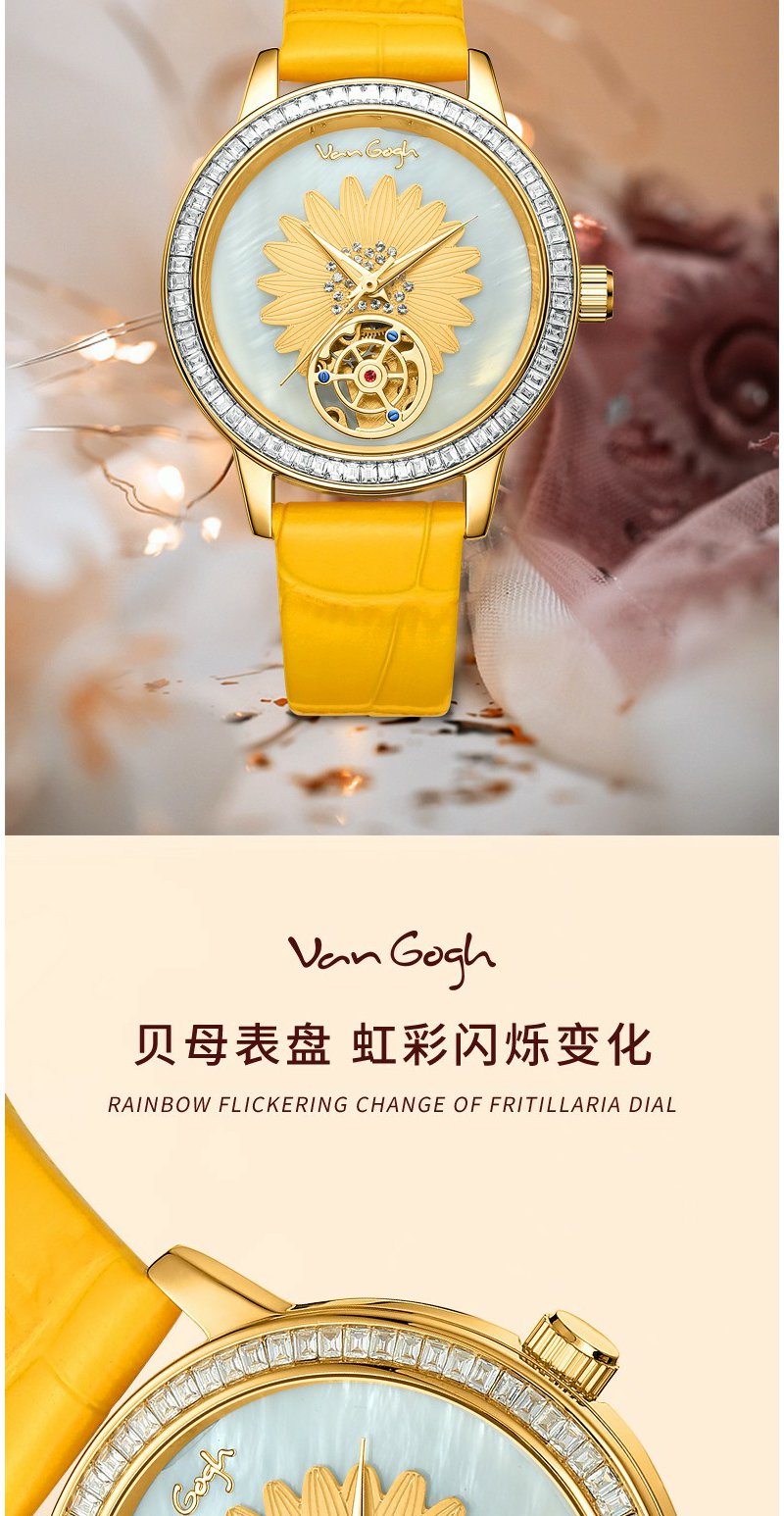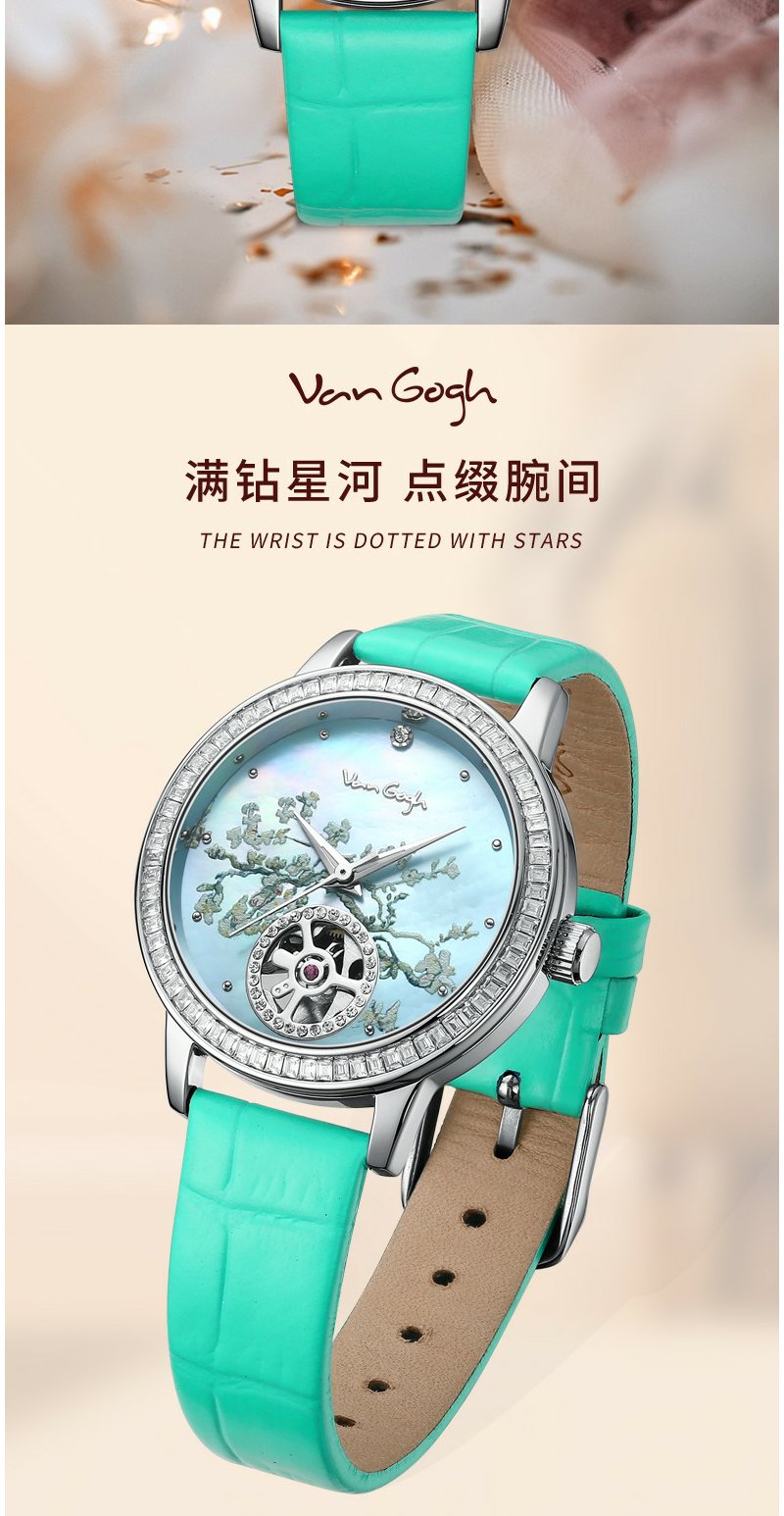 梵高(VanGogh)瑞士女士石英手表-盛开的杏树