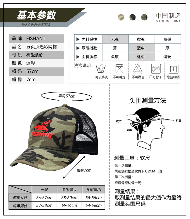 飞蚂蚁时尚防晒迷彩帽透气春夏秋季遮阳鸭舌帽男女路亚钓鱼帽子