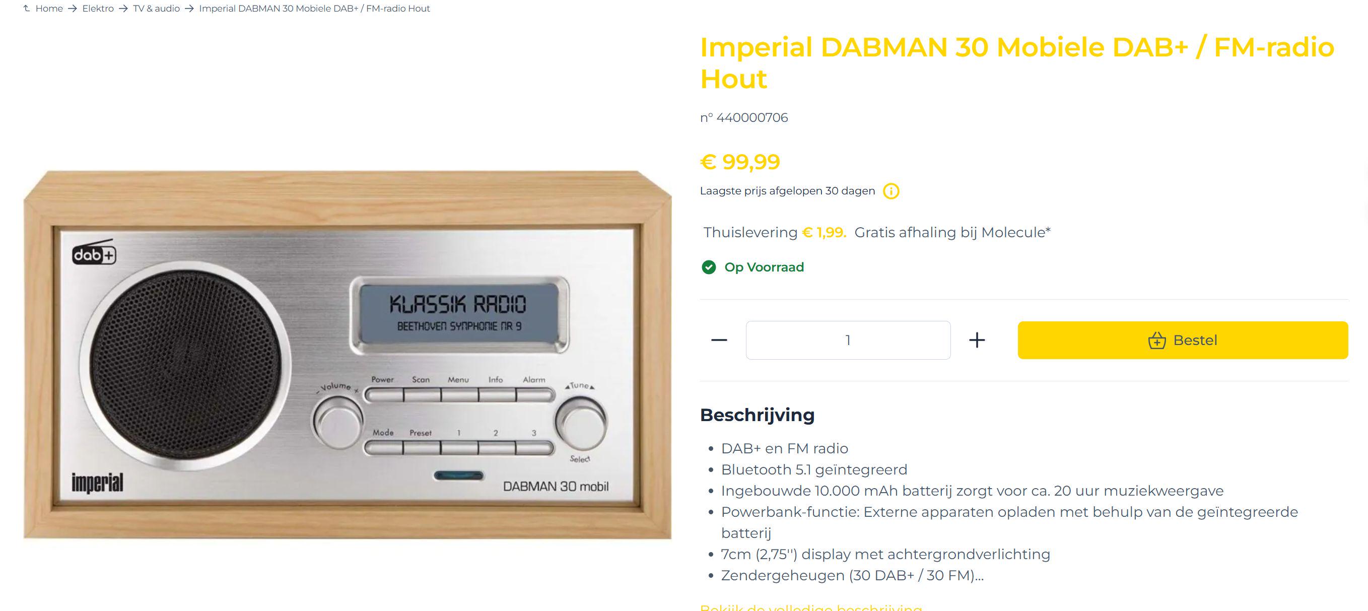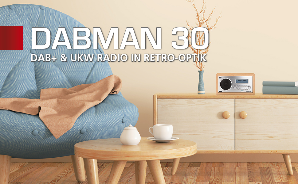 DABMAN 30是一款现代数字收音机,具有永恒的复古设计。DABMAN 30的70年代外观背后是最新收音机技术。