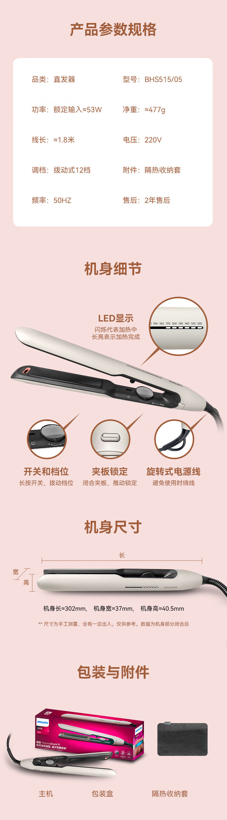 飞利浦(PHILIPS)电卷发棒BHS515/05 白色