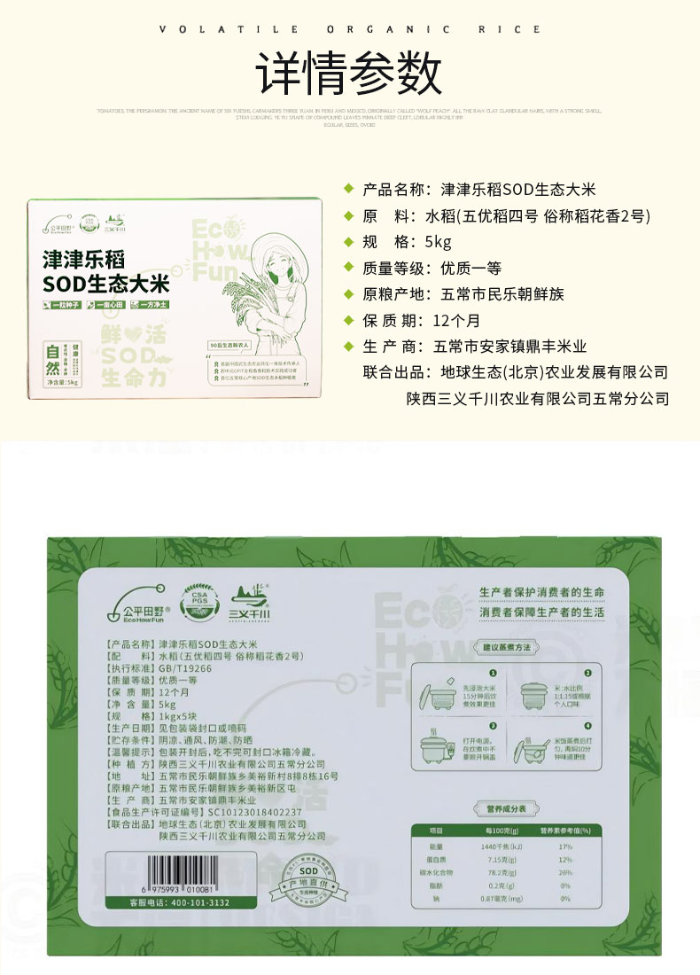 津津乐稻SOD生态大米(原粮老种 五常大米民乐核心产区 四位一体生态技术管理 那中元GPIT全程香香稻技术种植)配料:水稻(五优稻四号 俗称稻花香2号)