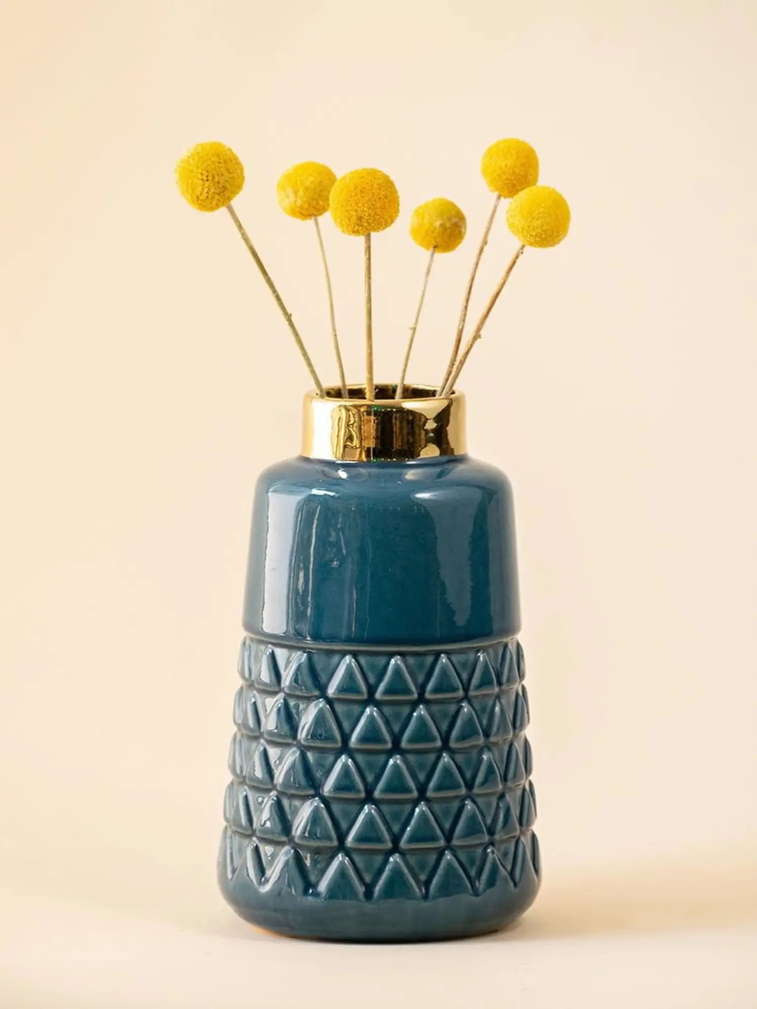 蓝丁香陶瓷花瓶,内部有水釉,专为鲜花设计。