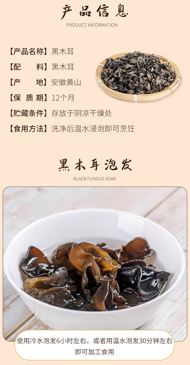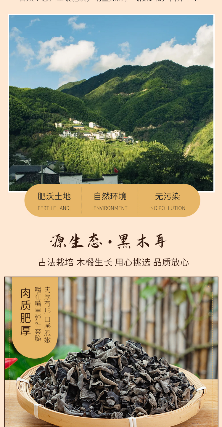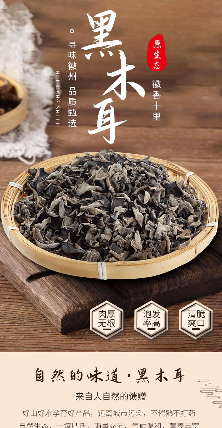 【徽香十里】黄山黑木耳100g 椴木小碗耳干货 农家特产菌菇凉拌无根肉厚炒菜