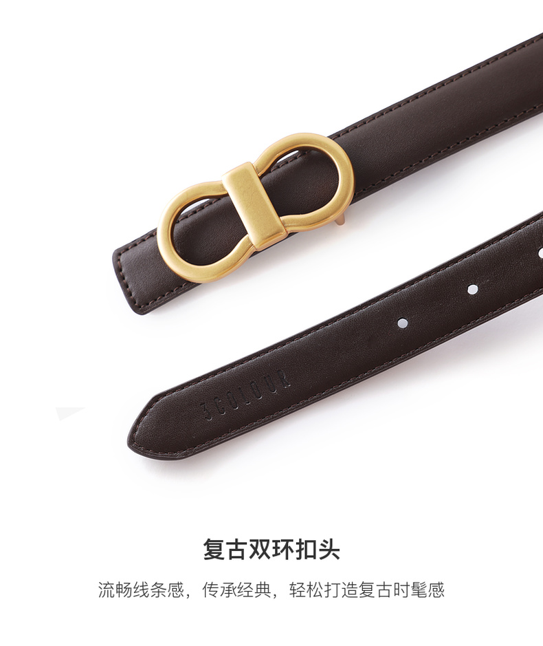 三彩2025新款极简腰带双环形扣头二层牛皮复古镂空时尚女百搭通勤