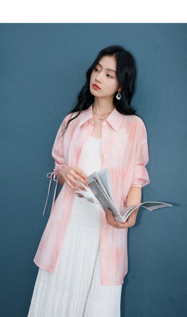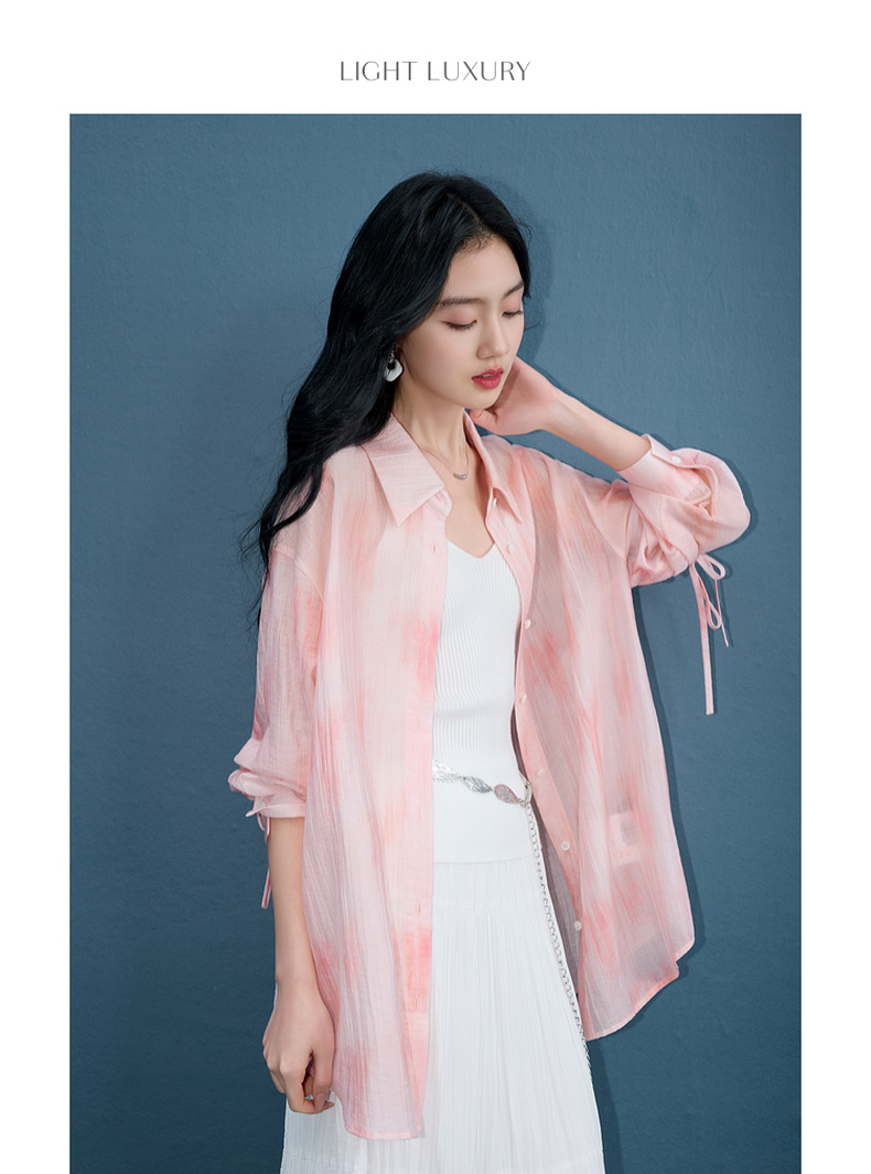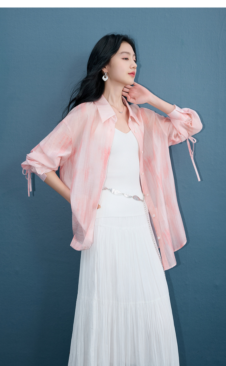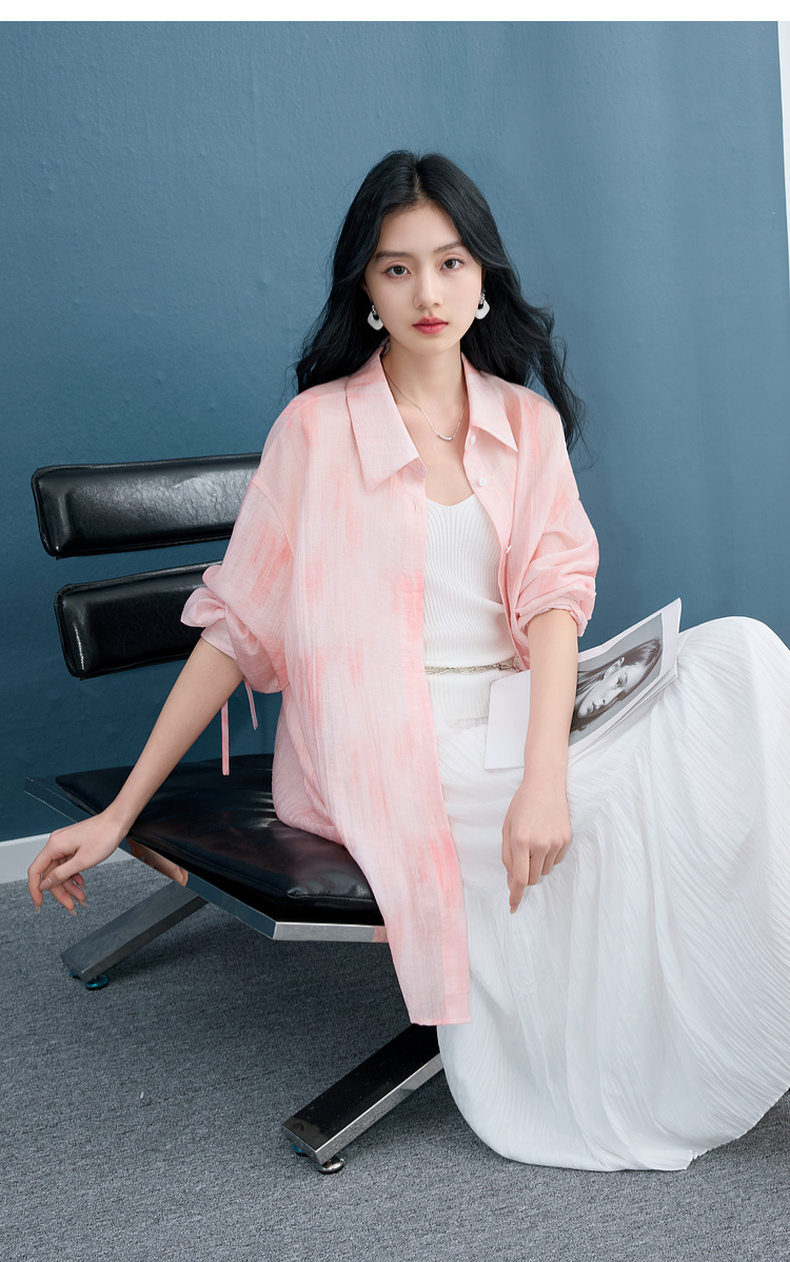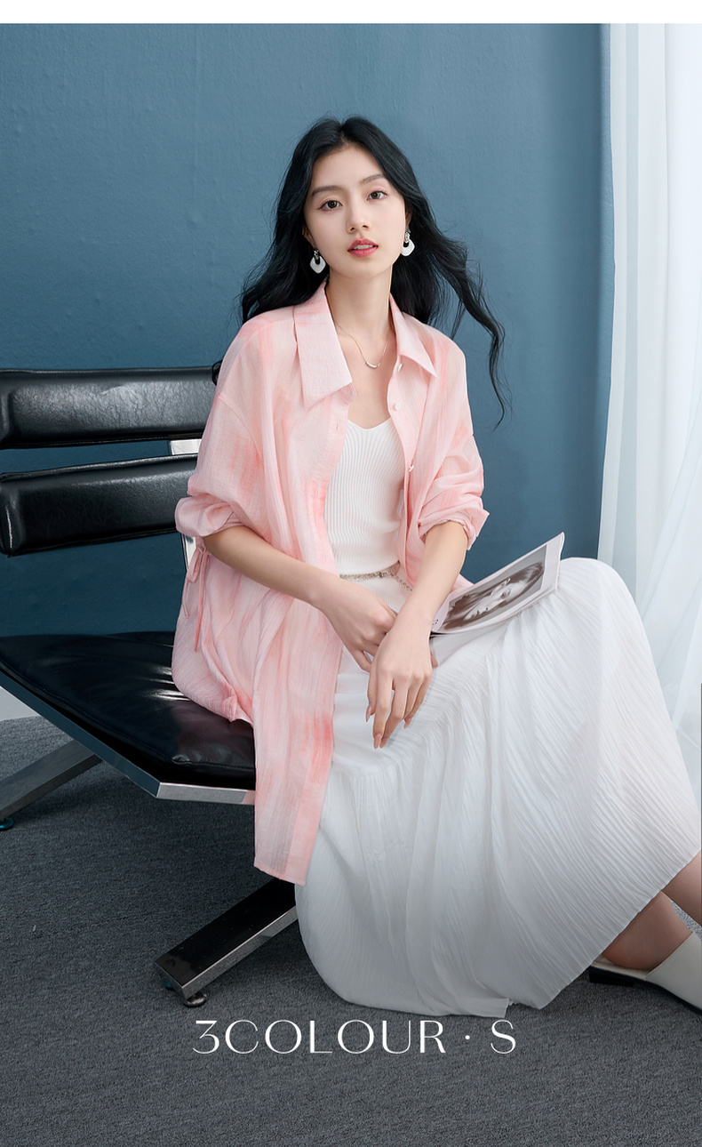 【莱赛尔】三彩2025秋季新款宽松中长衬衫轻薄长袖上衣气质S