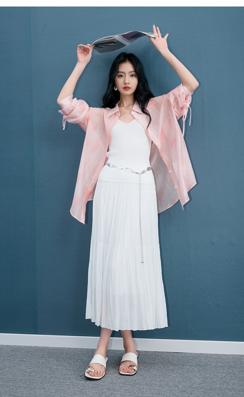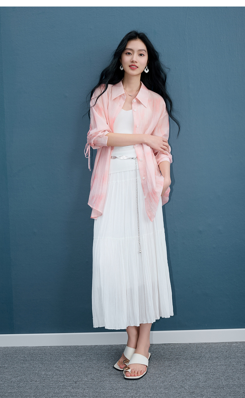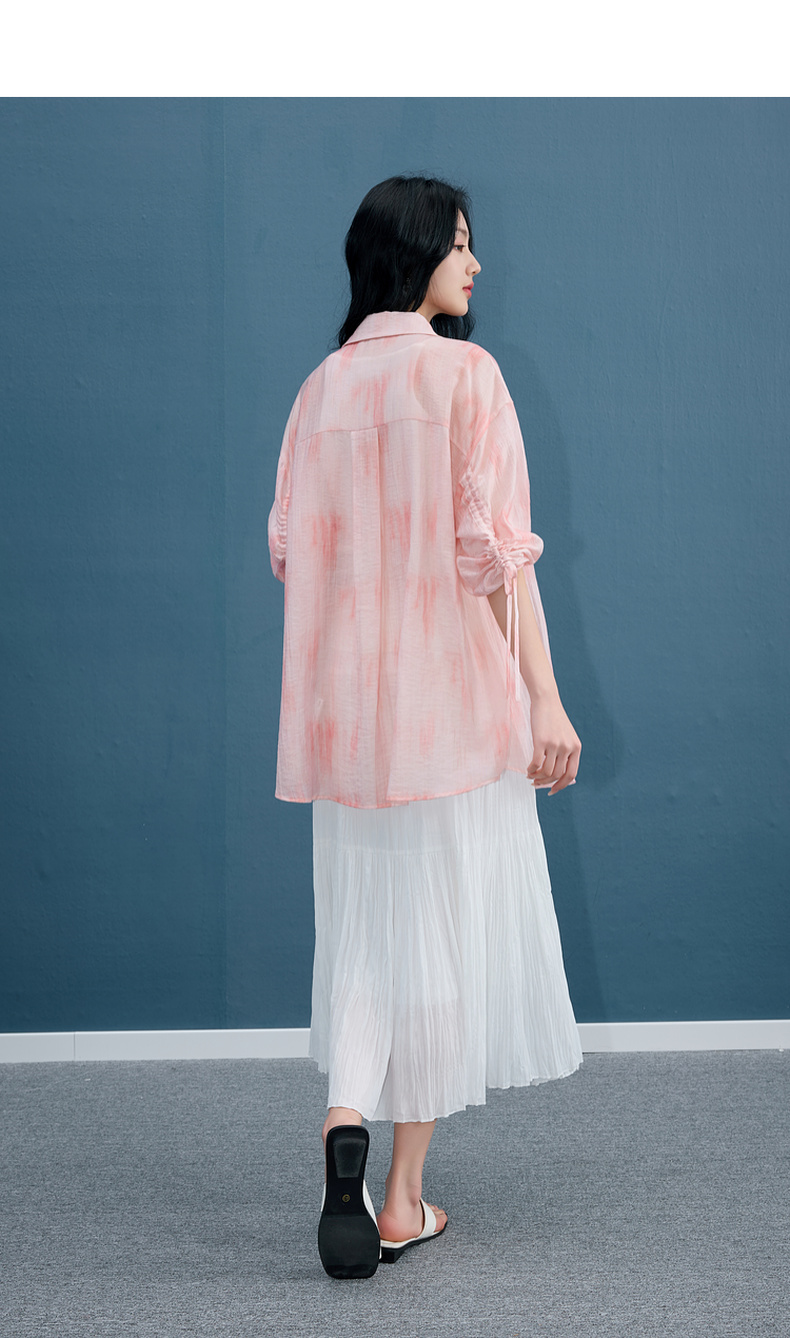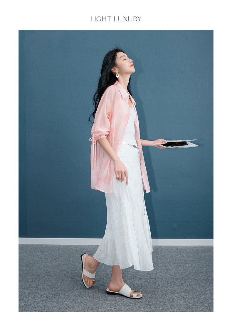 【莱赛尔】三彩2025秋季新款宽松中长衬衫轻薄长袖上衣气质S