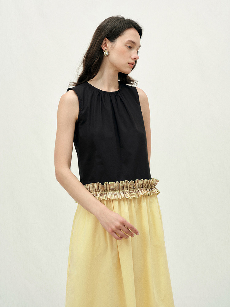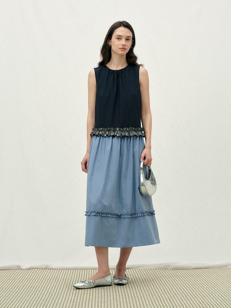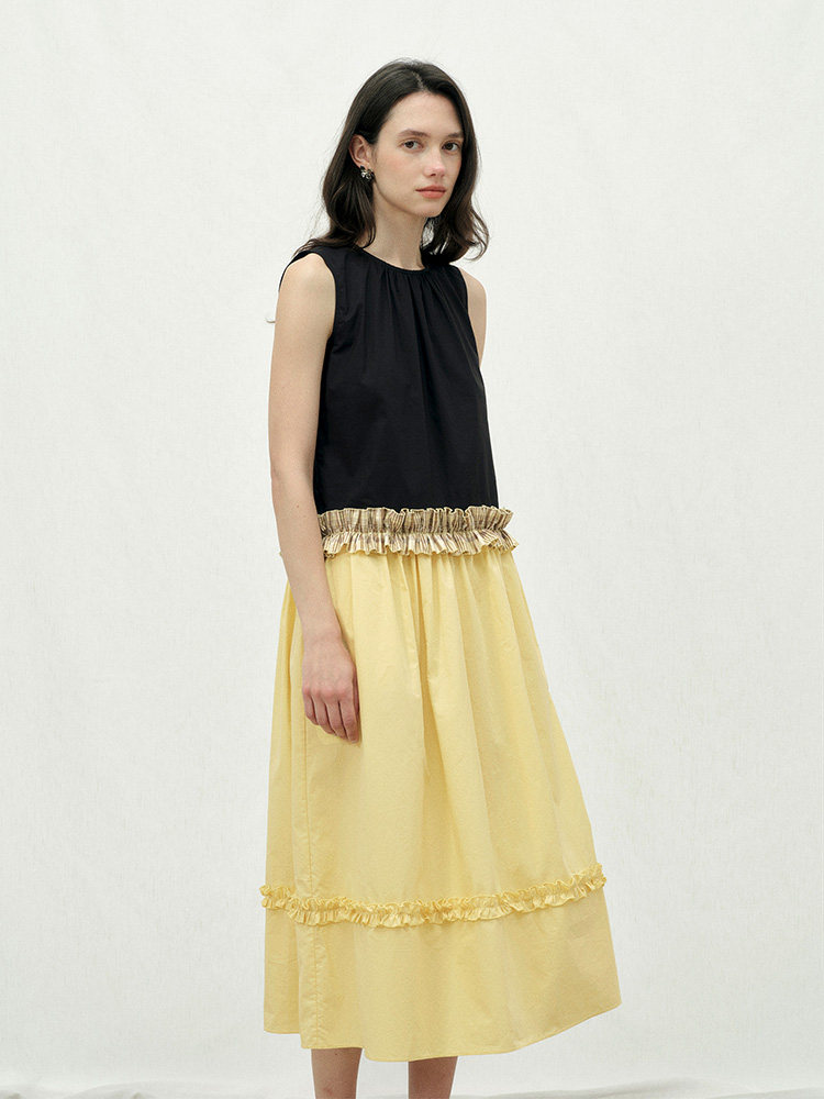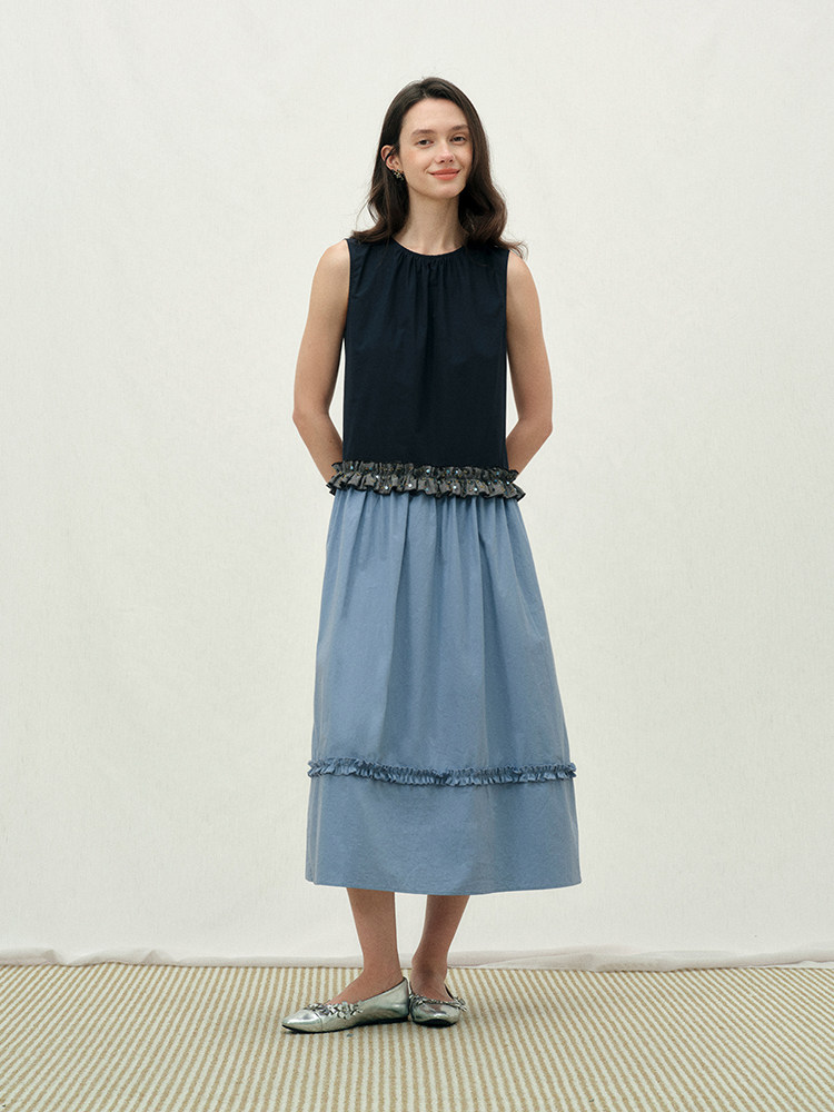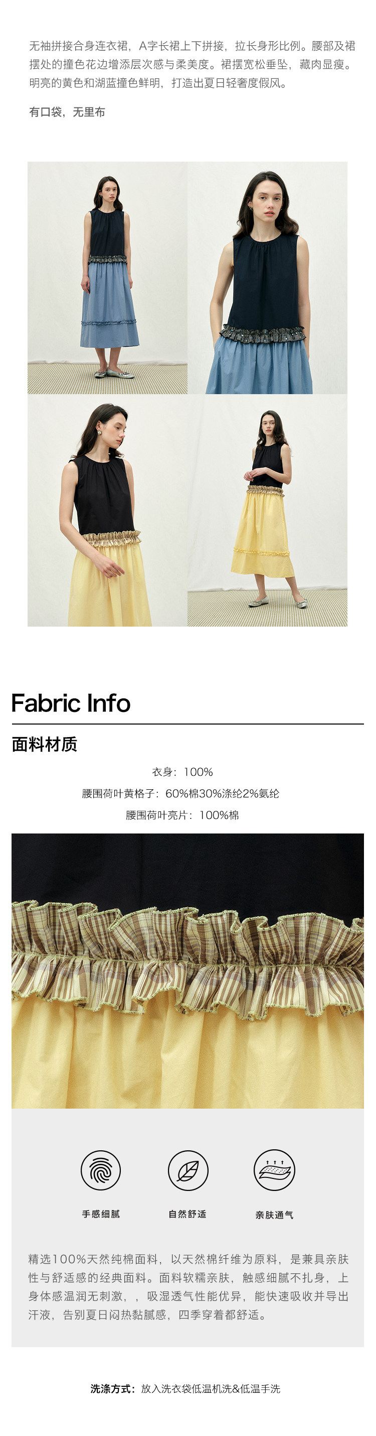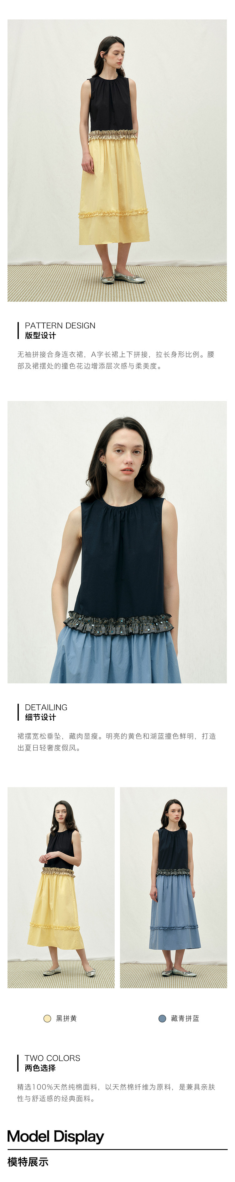 ForPoem 26/SS 原创设计夏日拼色连衣裙无袖拼接a字藏肉显瘦裙子