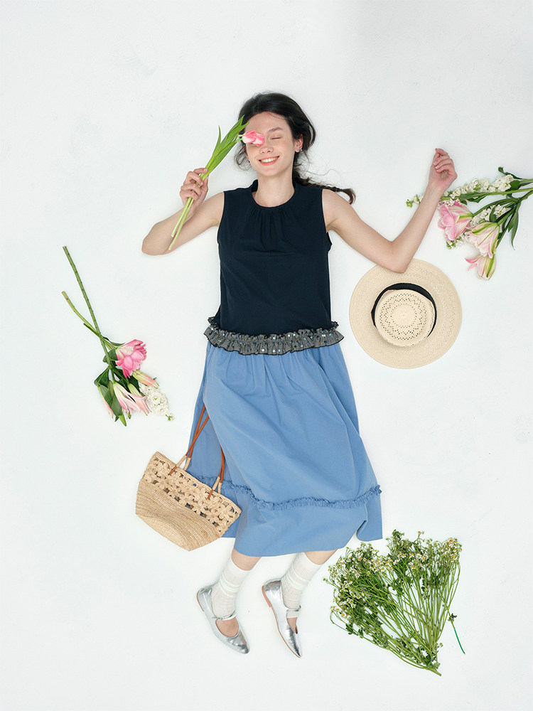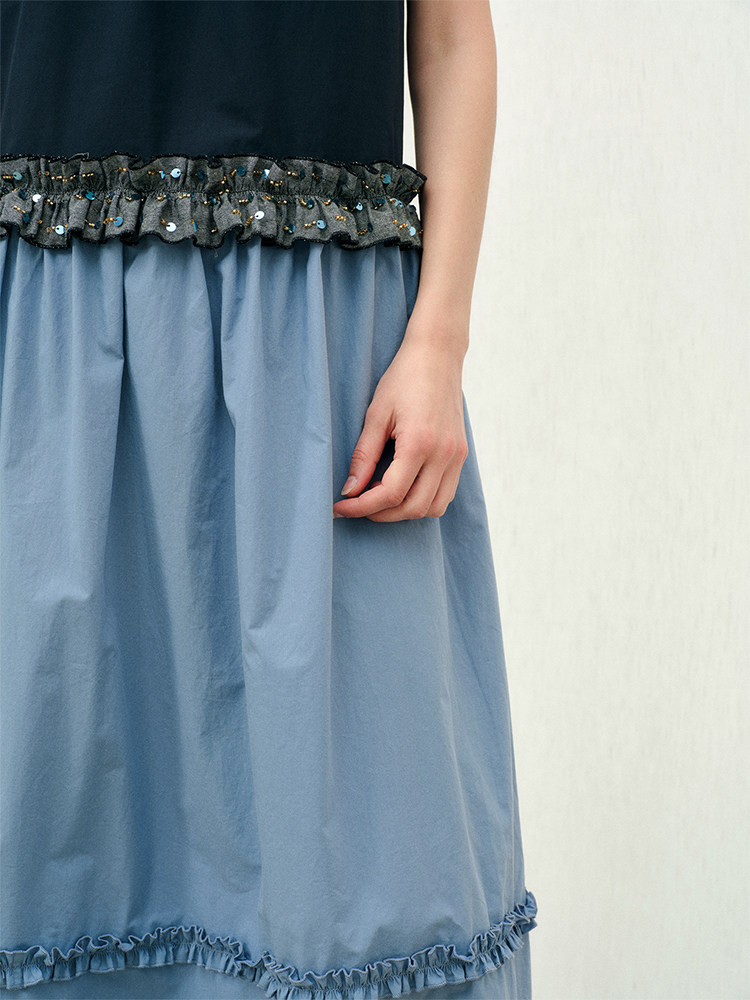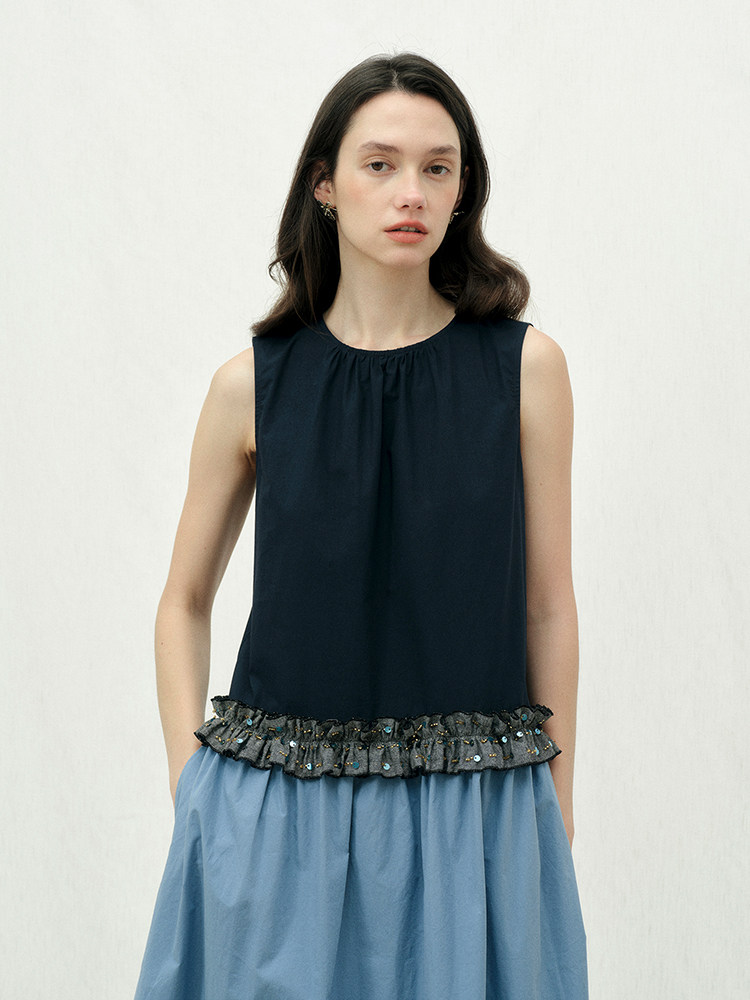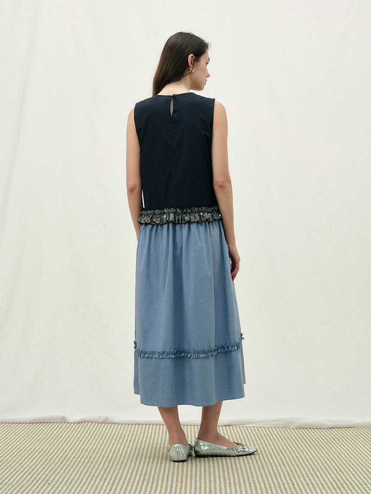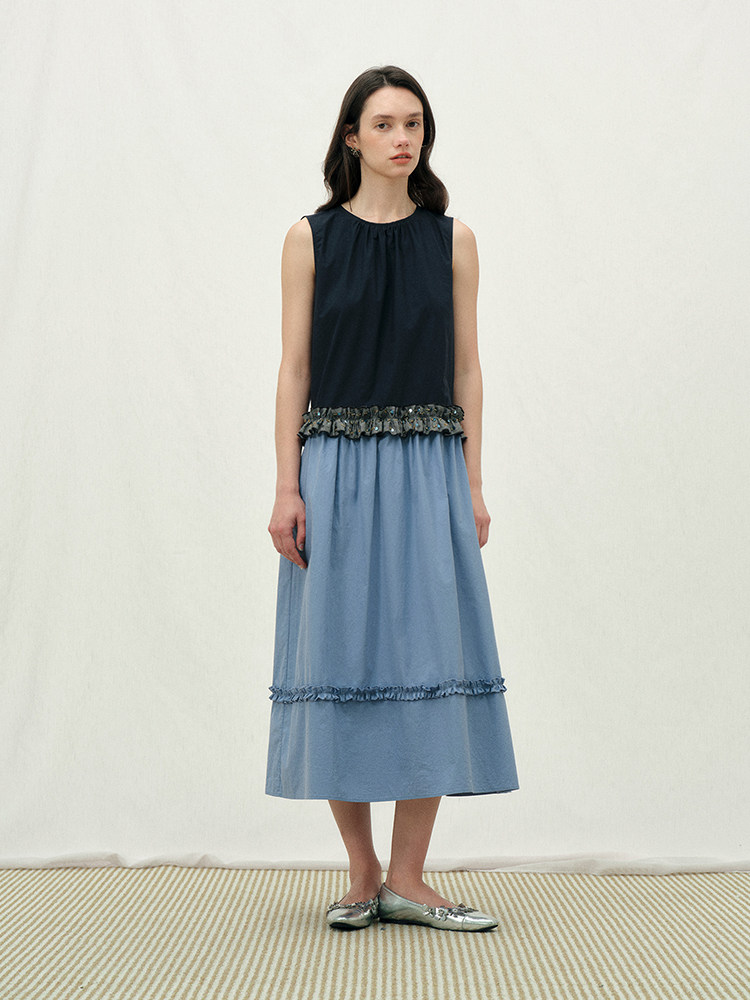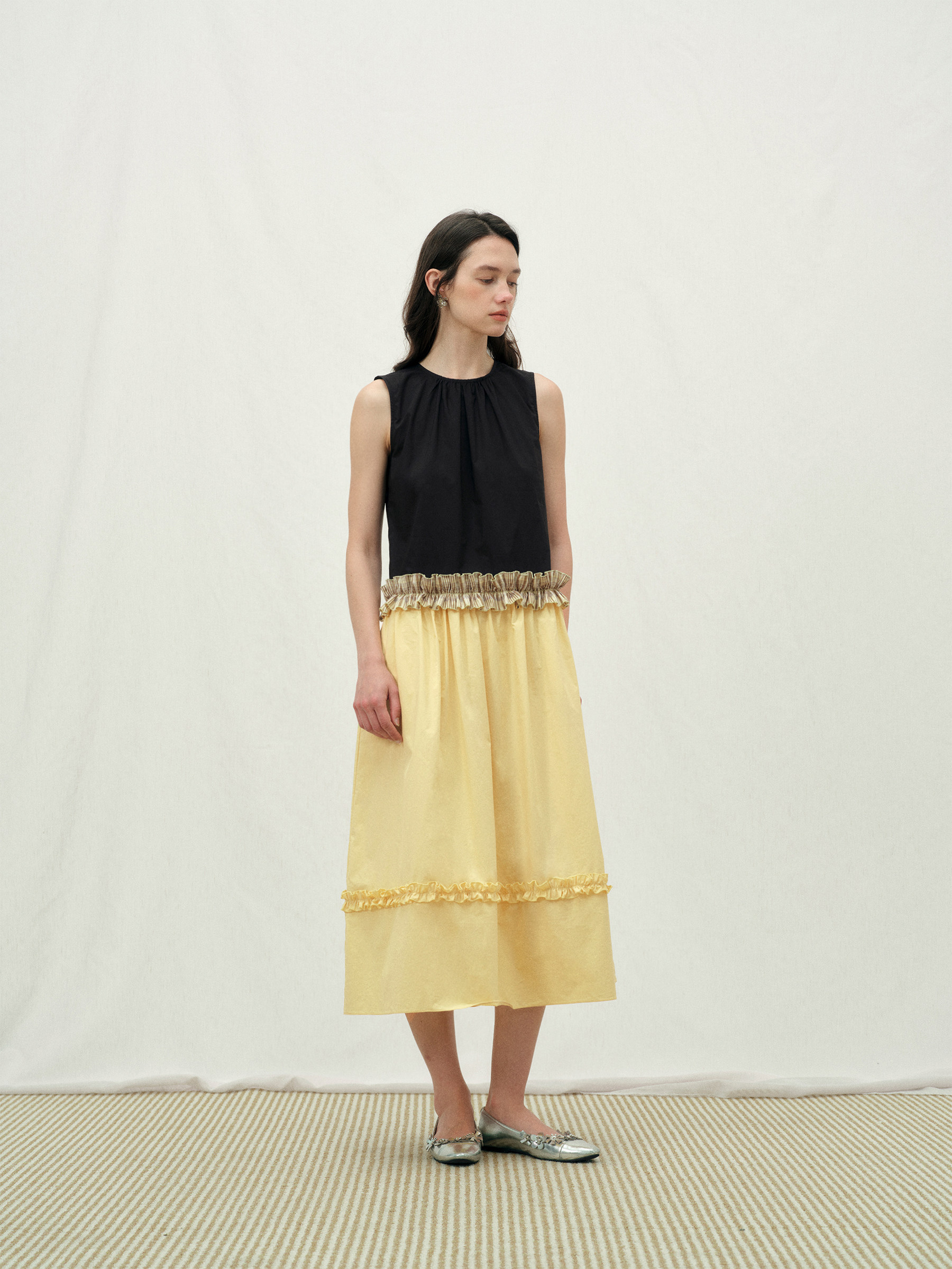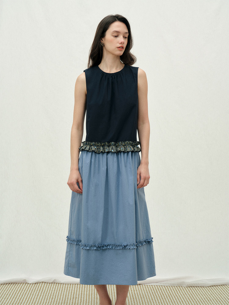ForPoem 26/SS 原创设计夏日拼色连衣裙无袖拼接a字藏肉显瘦裙子