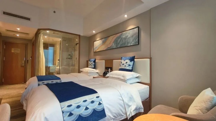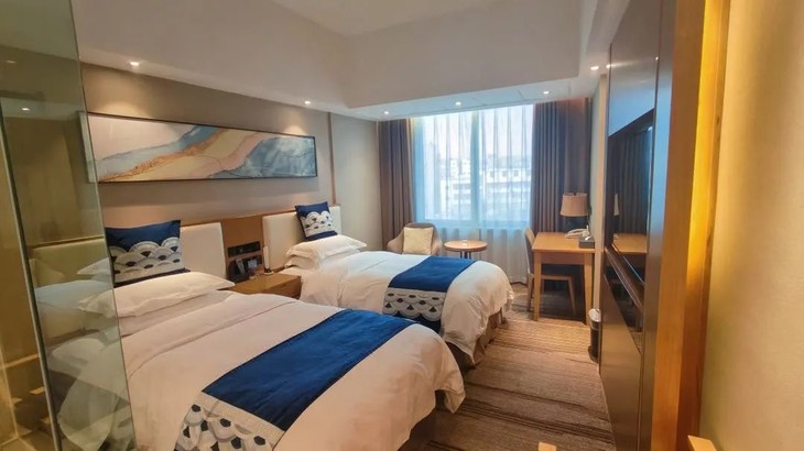 客房面积 26 平方米,配备 2 张 1.2 米单人床,满足同行伙伴的住宿需求。室内设施齐全,台灯、茶几、书桌营造温馨舒适的休憩与阅读空间,衣柜收纳便利,电视机、空调提供娱乐与适宜温度,电吹风也为出行洗漱后打理发型助力,让您尽享便捷自在的旅居体验 。