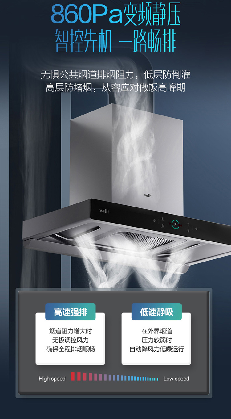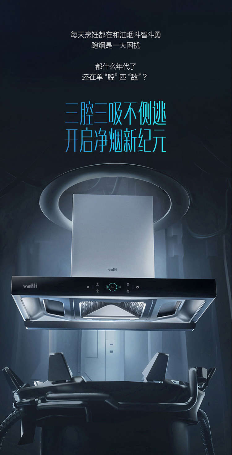华帝(VATTI)抽油烟机三腔变频创世S6欧式家用吸油烟机 24风量大吸力低噪挥手智控一键自清洁 i11206