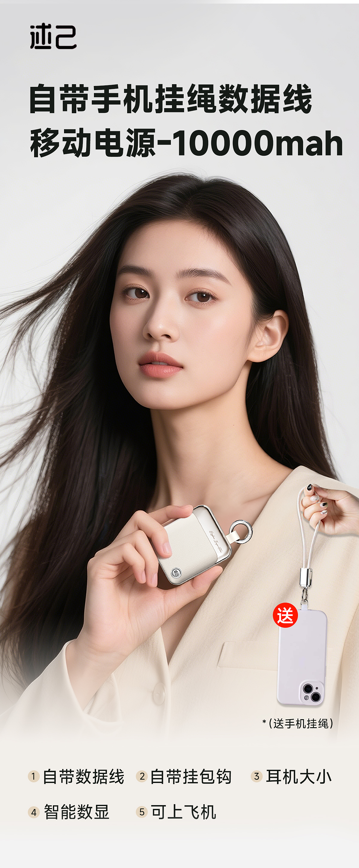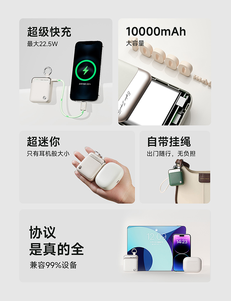 【产品配件内容】充电宝*1,挂绳片*1,挂绳*1,说明书*1,挂钩*1