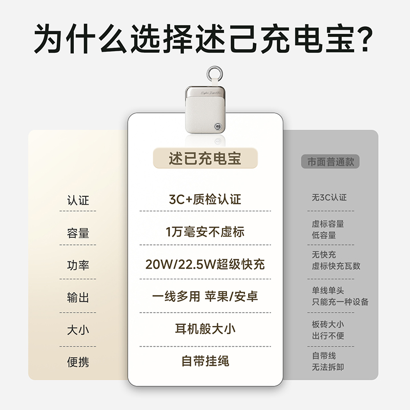 【品名】述己轻巧系列充电宝(小方块)QQ-008