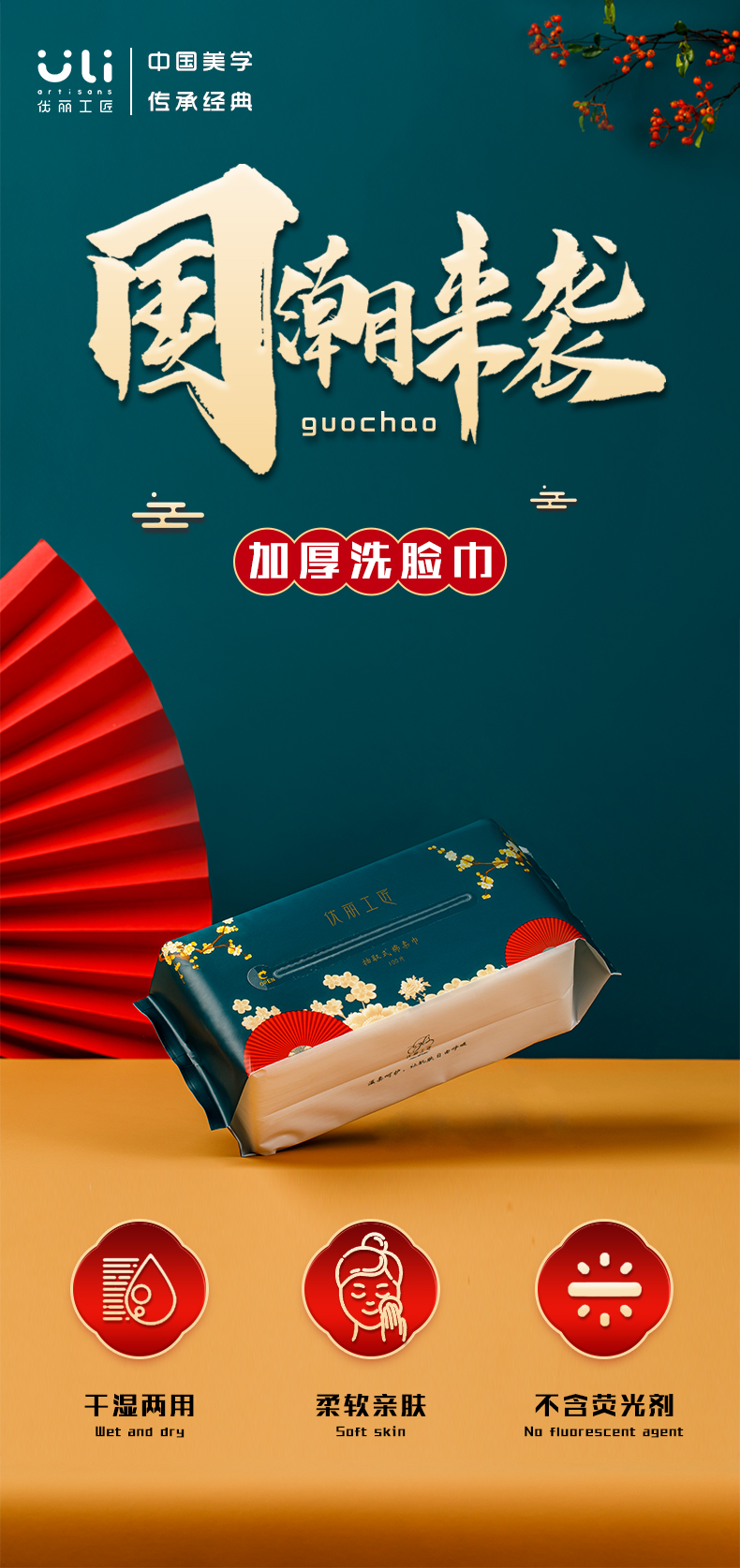 【干湿两用】优丽工匠中国风抽取式棉柔巾