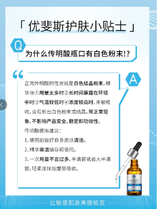 gao浓度传明酸机器灌装过程中 瓶口瓶外有几率产生残留白色结晶,为正常现象,不影响正常使用