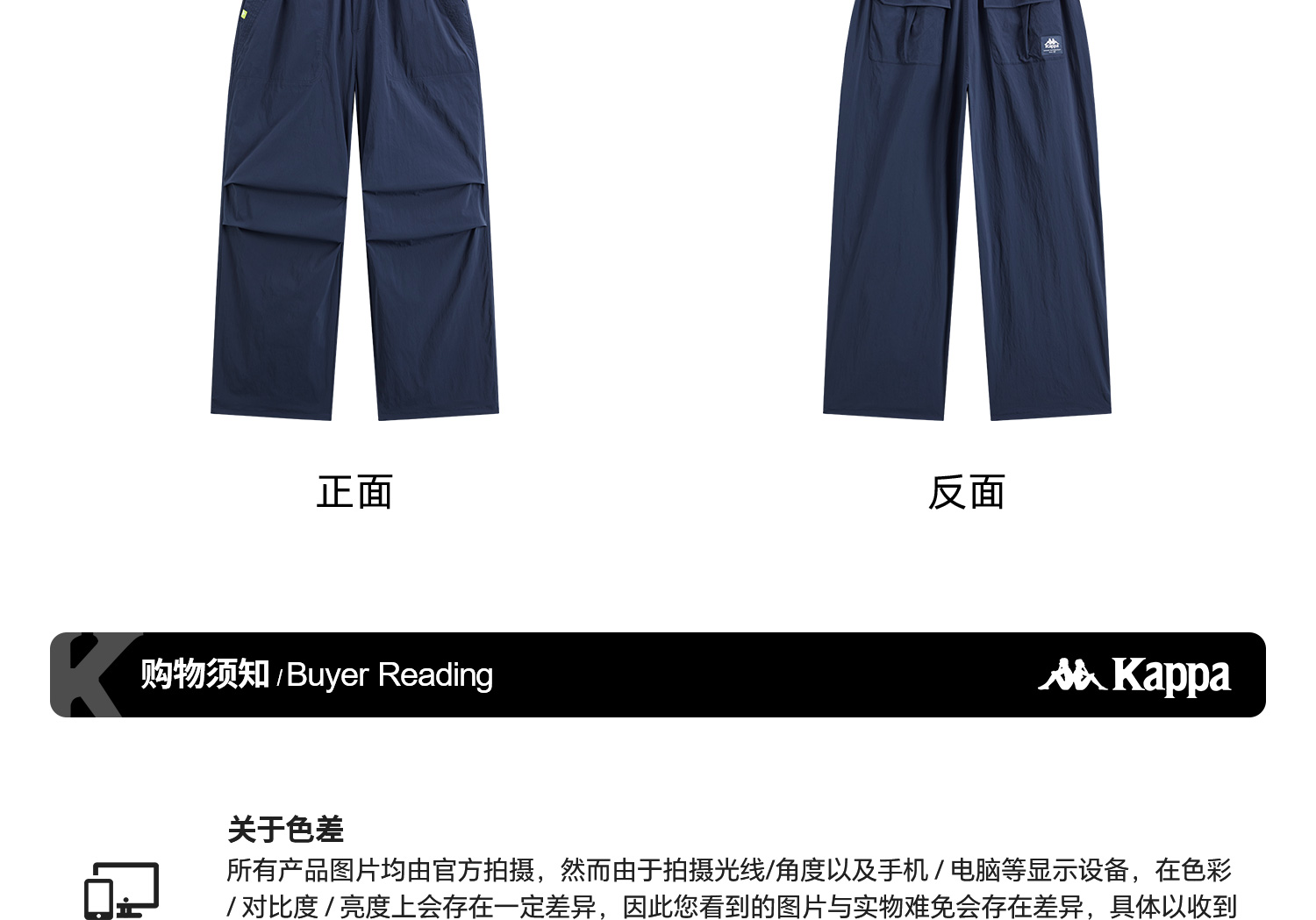Kappa卡帕背靠背运动长裤男2025夏季新款宽松直筒裤防泼水工装裤K0F52AY71