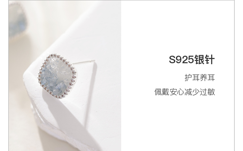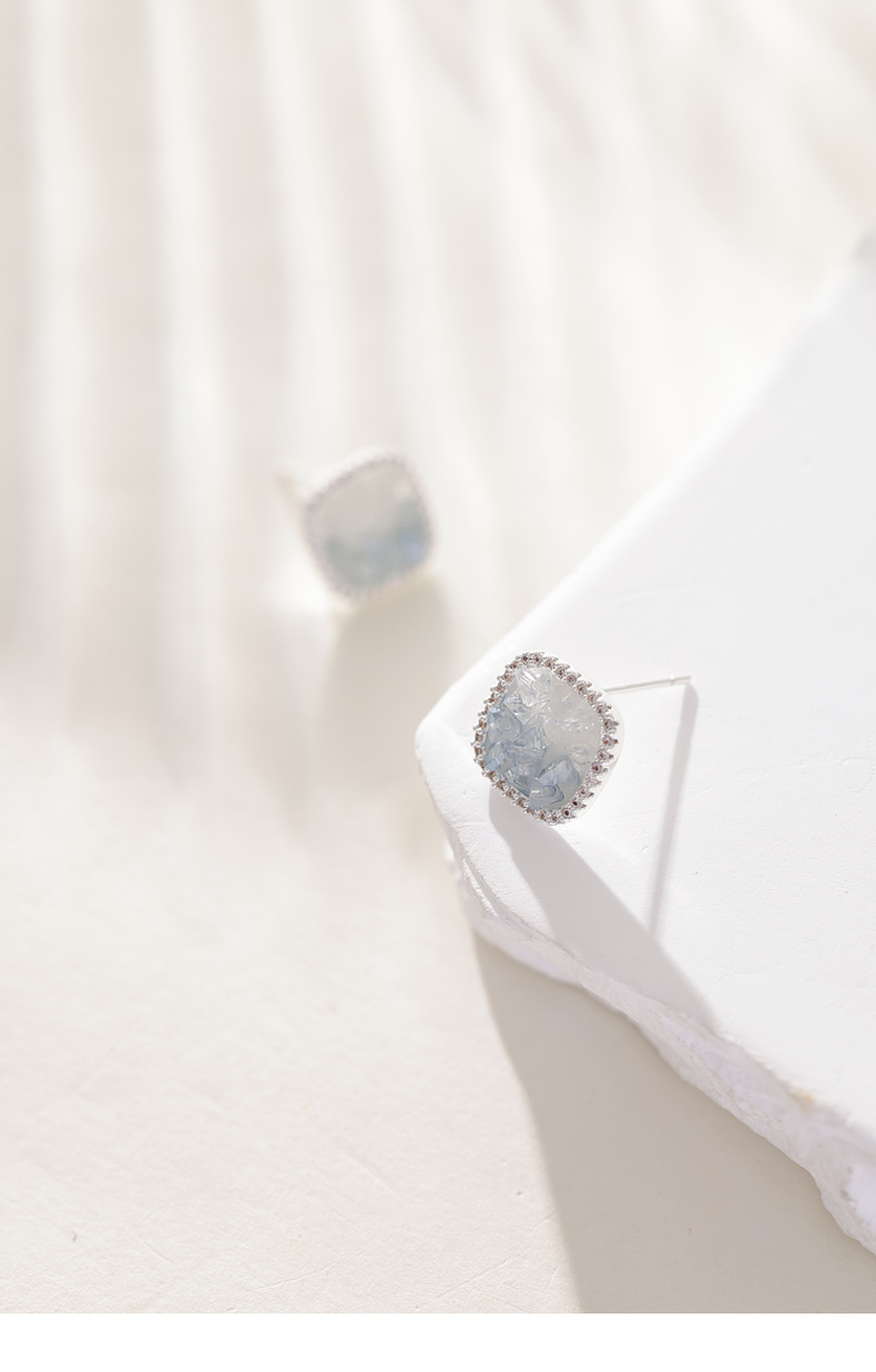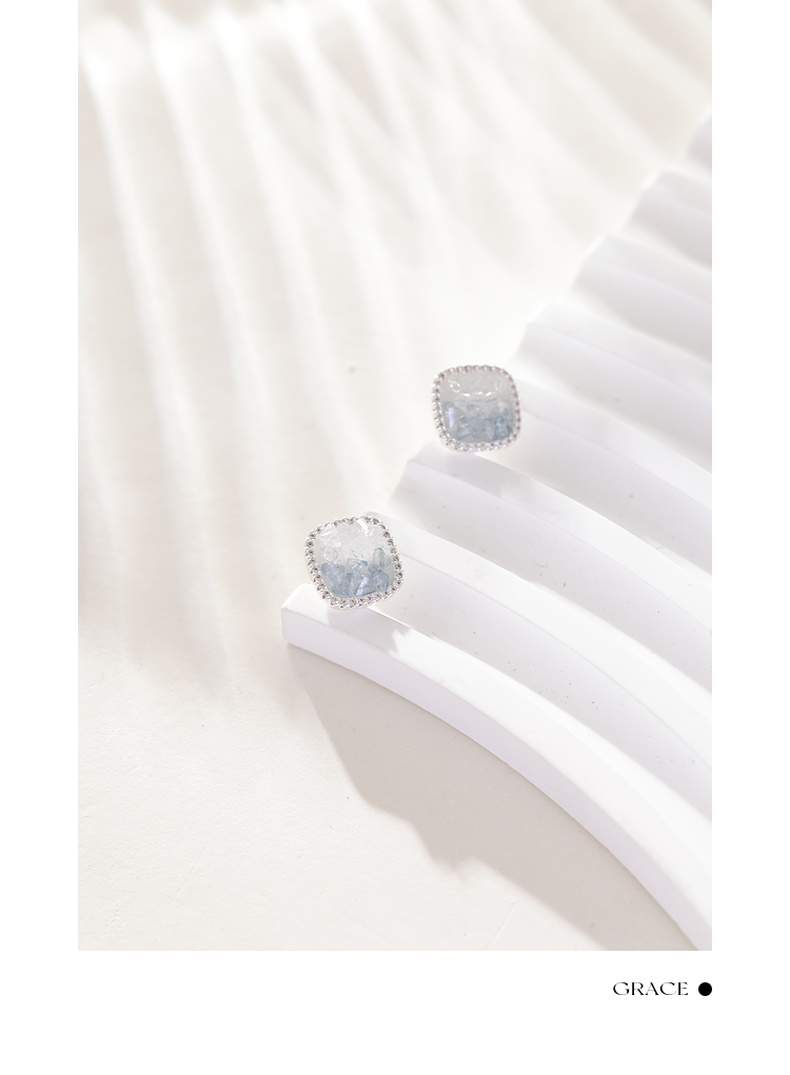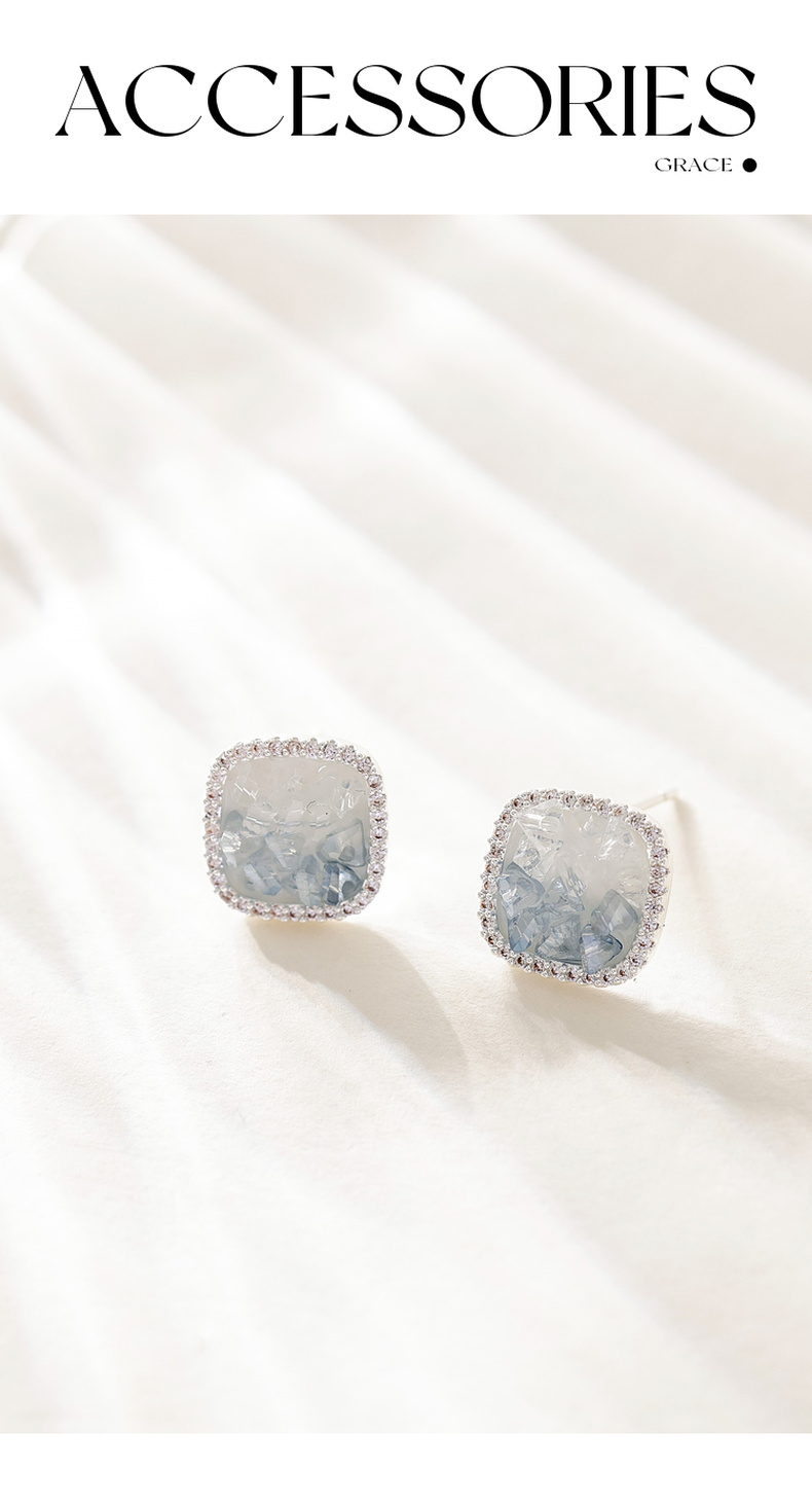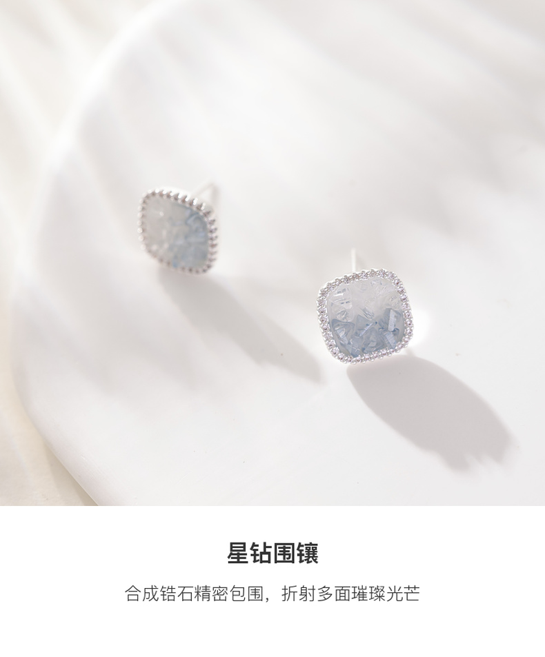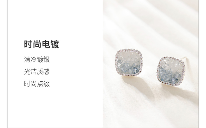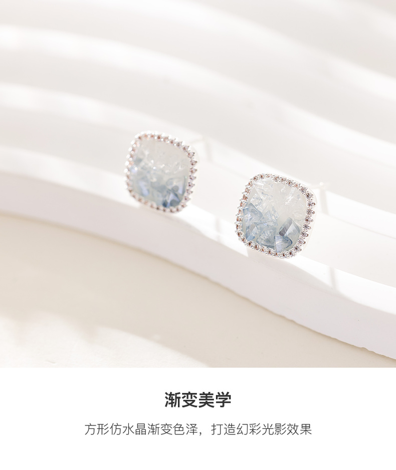 三彩2026新款轻奢方形渐变仿水晶耳钉合成锆石出游通勤约会耳饰女