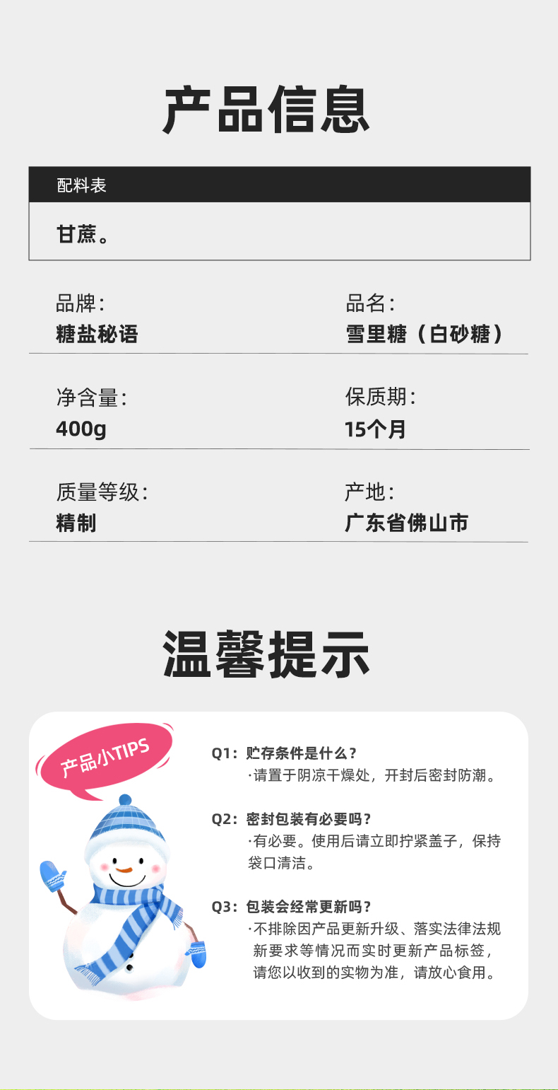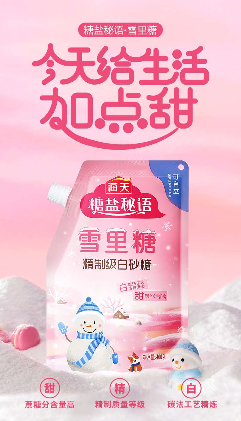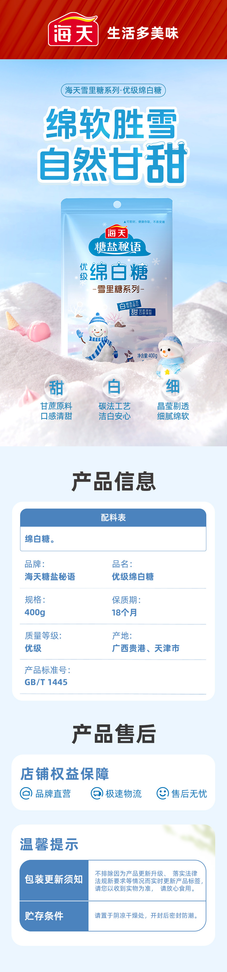 新品推荐-海天优级绵白糖/雪里糖 400g*3 优选甘蔗原料 口感清甜 烘焙甜品白砂糖