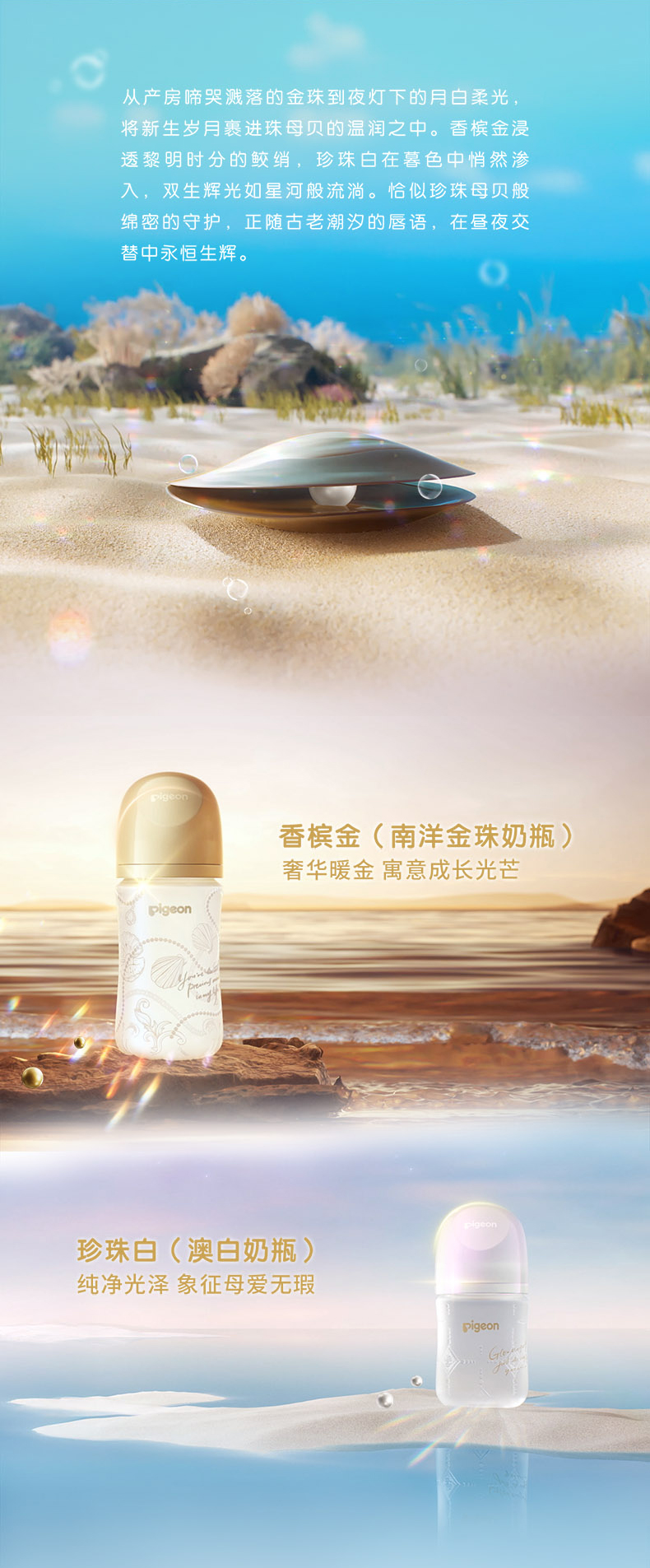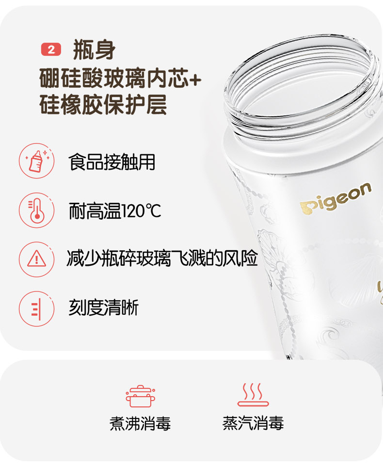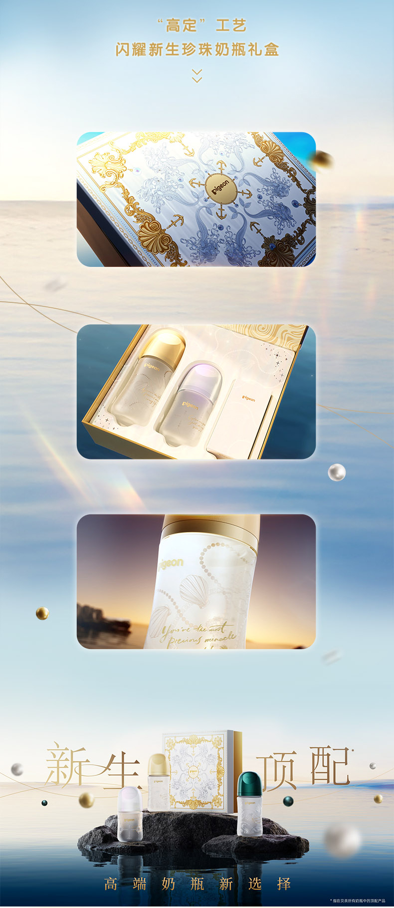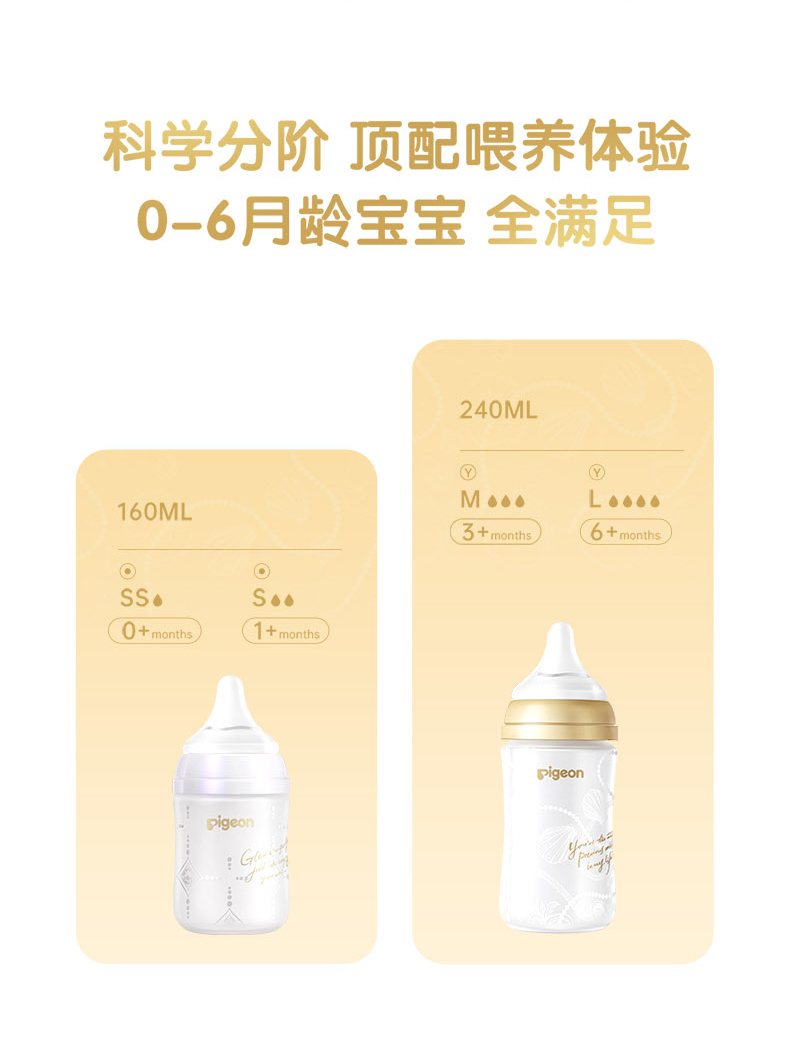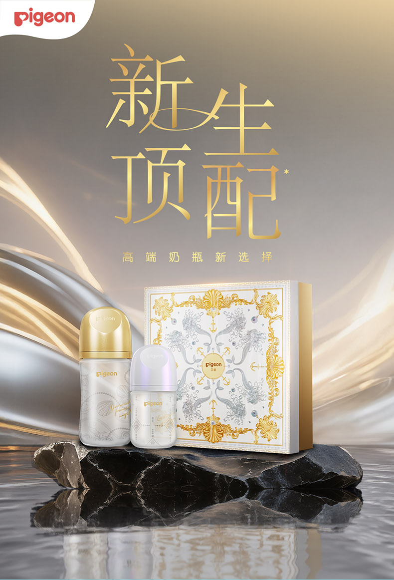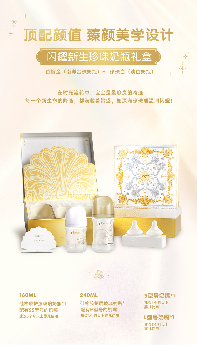 【官方自营】PIGEON/贝亲闪耀新生珍珠奶瓶礼盒0-6月龄宝宝宽口径硅橡胶护层玻璃奶瓶含衔设计奶瓶套组