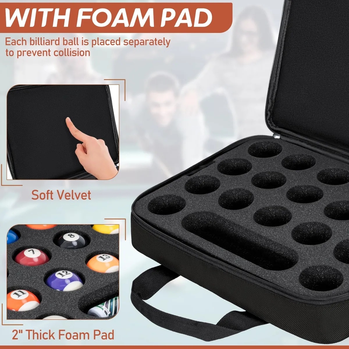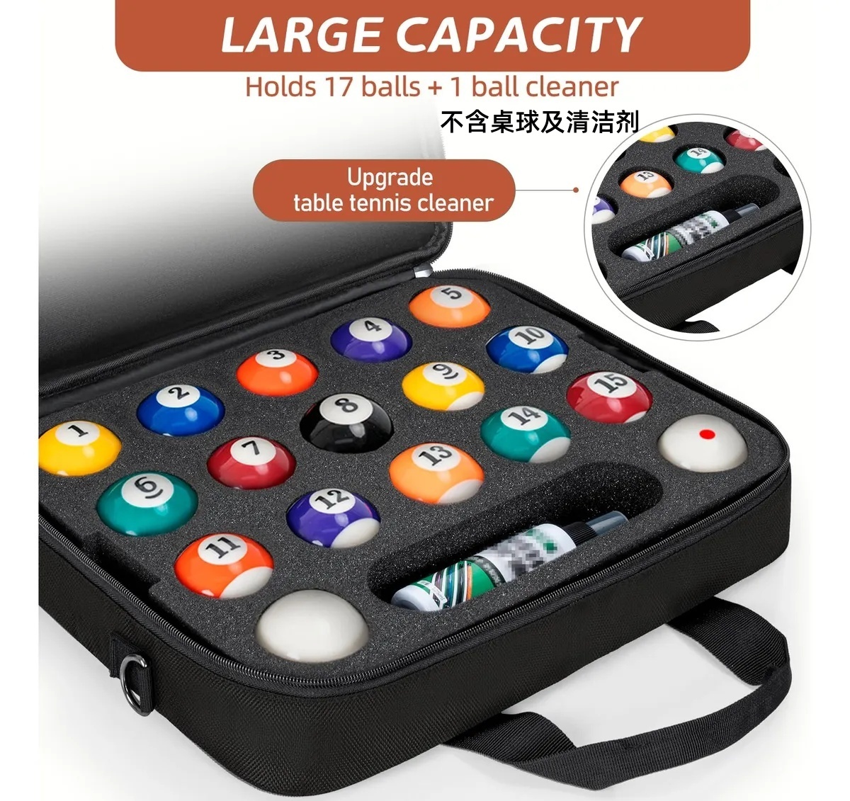 这款大容量台球收纳包,轻松装下17个专业台球和一瓶球清洁剂。其紧凑的设计,消除杂乱,同时保护和整理必需品。