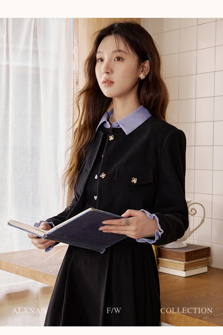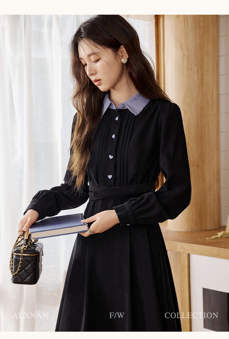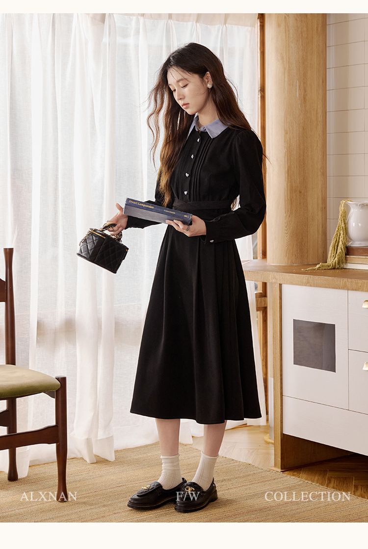 【65折秒杀】鹿向南「海蓝玫瑰」收腰衬衫连衣裙2025秋冬新款L39679