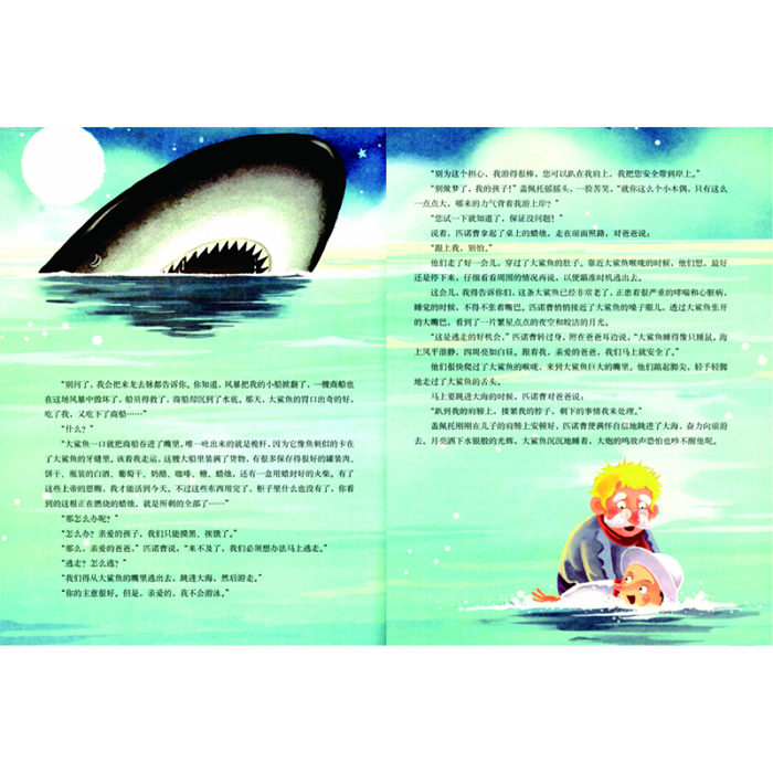 “非常大!”海豚回答,“这么说你就明白了,他比五层高的楼房还要大,他的嘴巴又宽又深,连火车都可以轻易从他的喉咙里呼啸而过。”