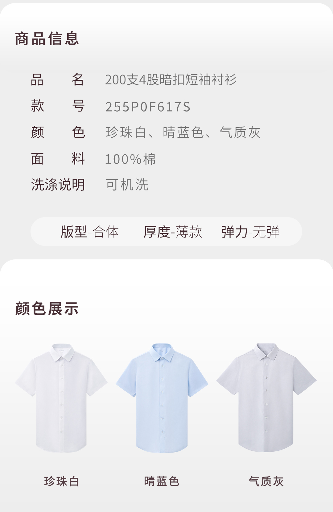 【总裁九号】200支纯棉DP抗皱高端短袖衬衫255P0F617S