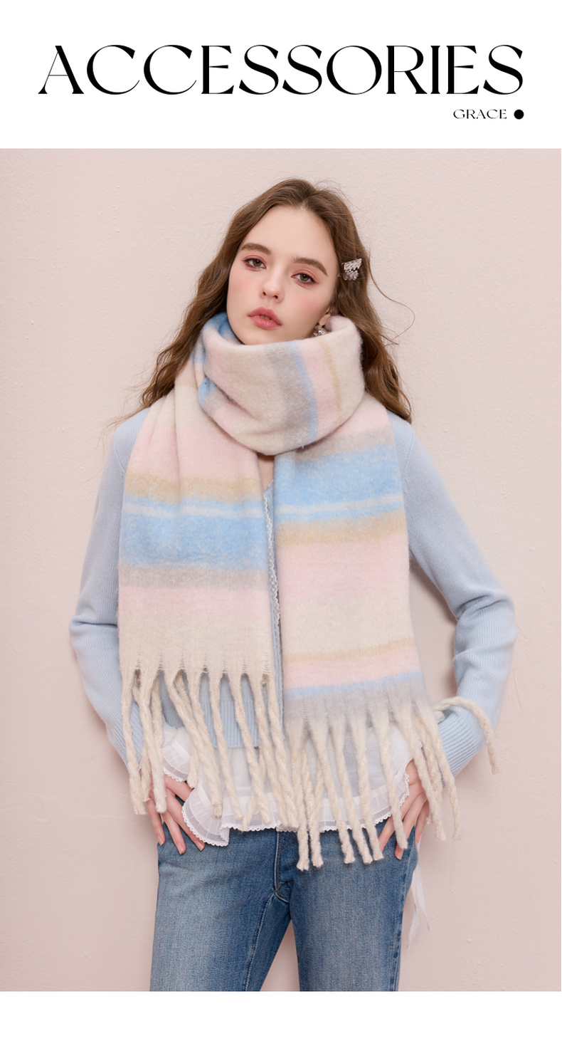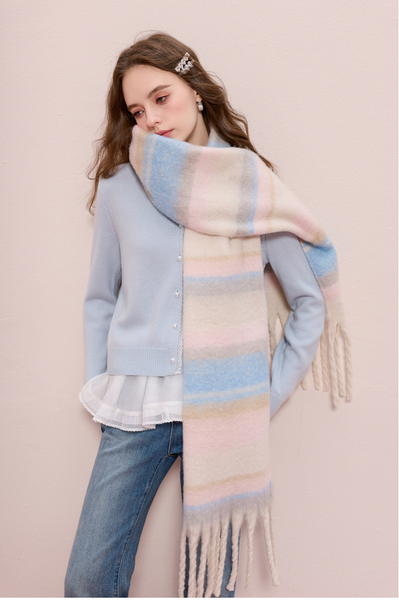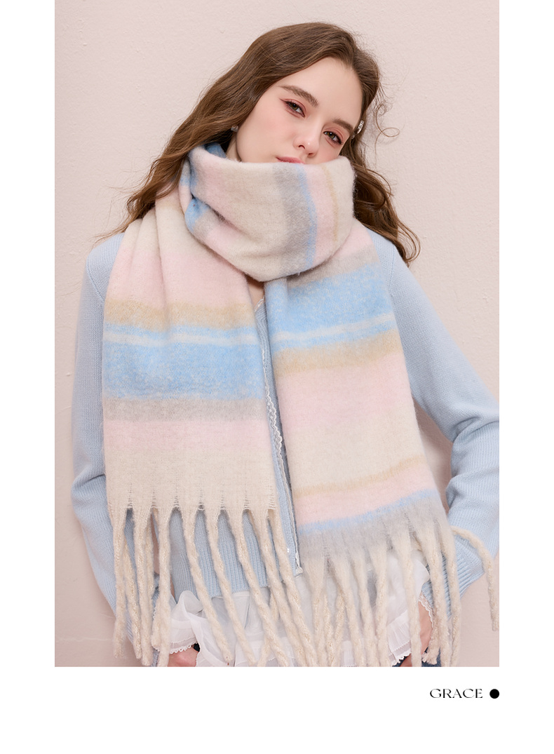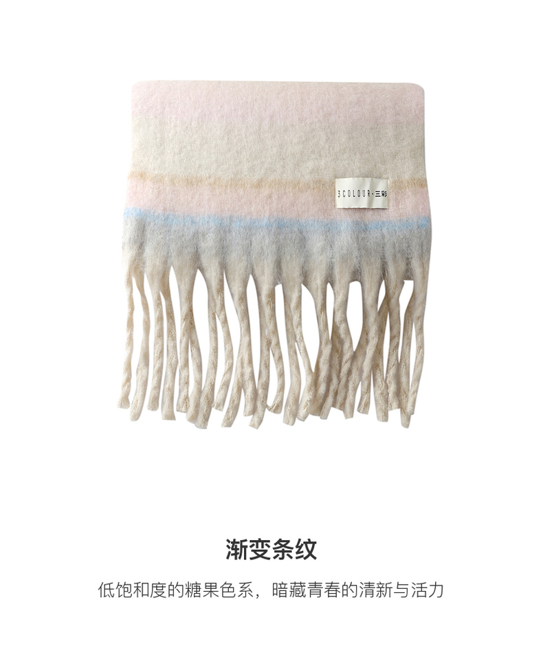 【臻暖围巾】三彩2025新款清新渐变条纹流苏拉毛保暖氛围感女