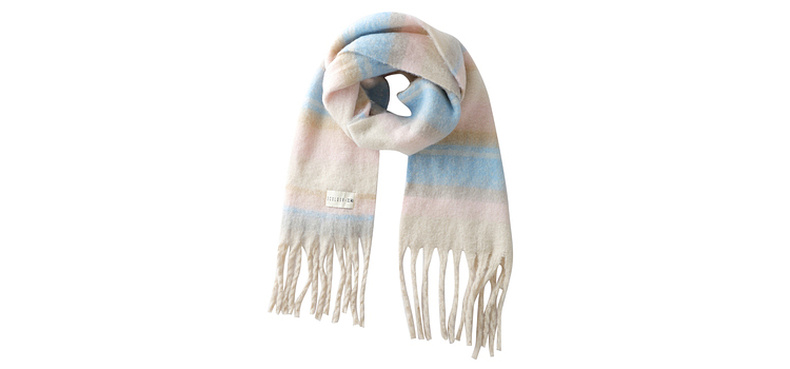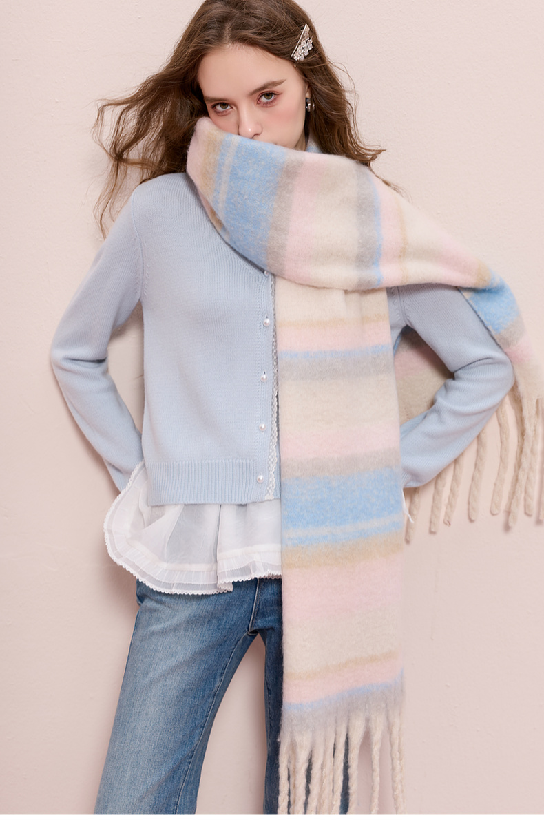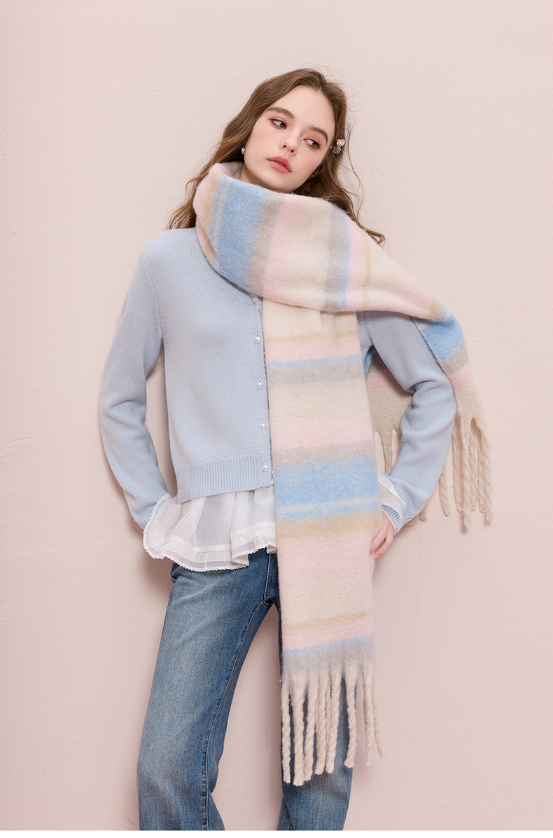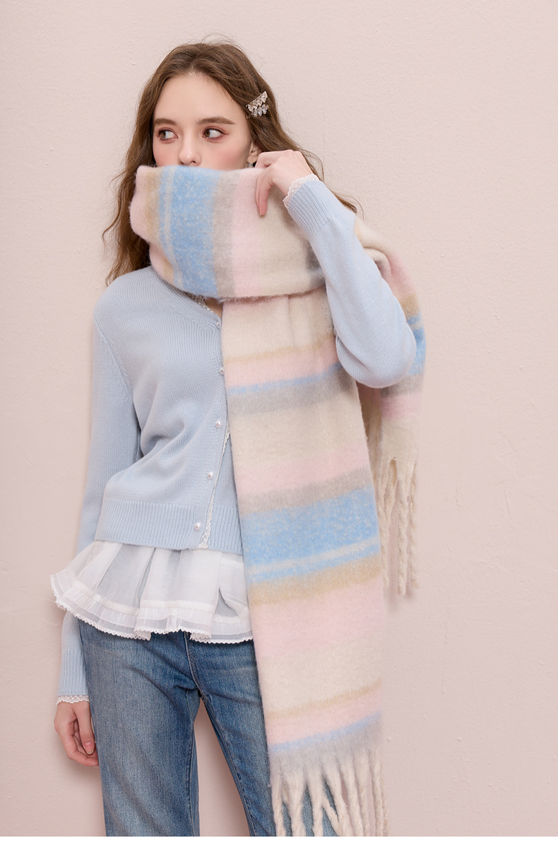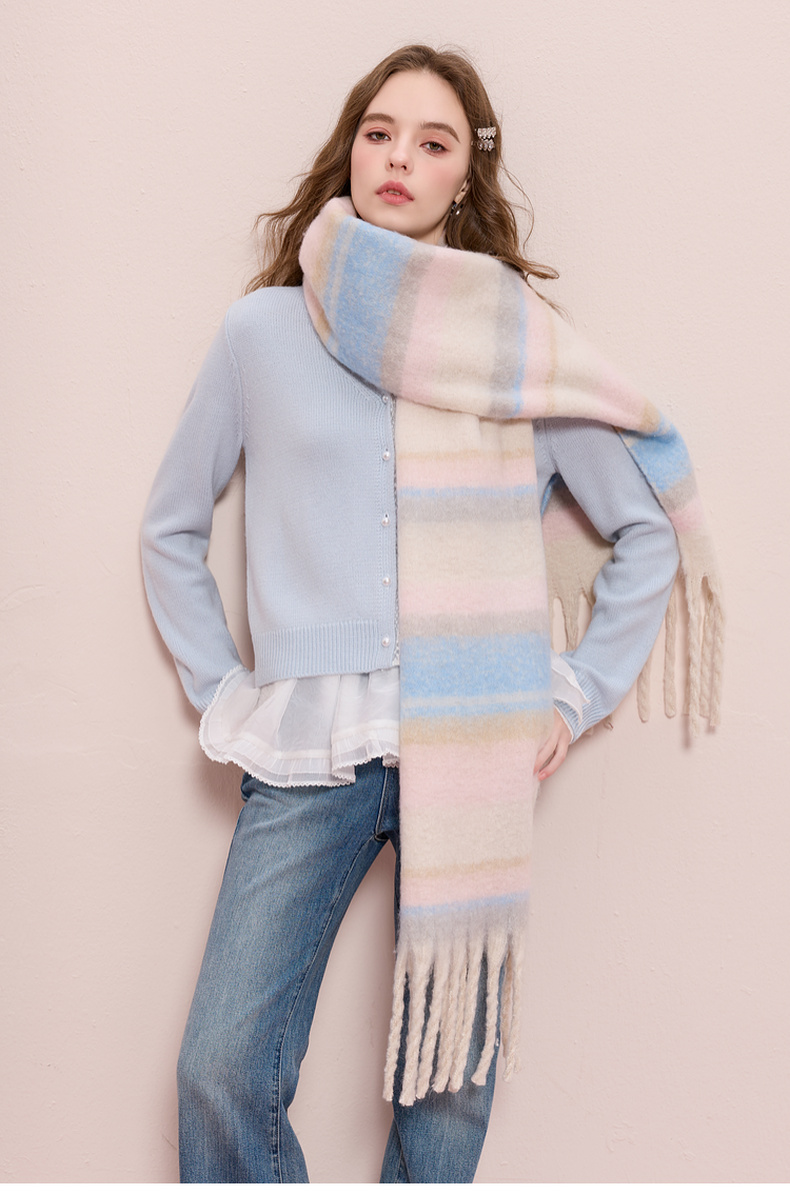 【臻暖围巾】三彩2025新款清新渐变条纹流苏拉毛保暖氛围感女