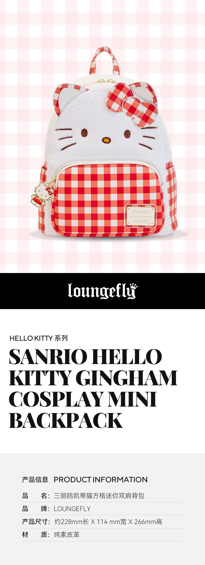 Loungefly Sanrio Hello Kitty Gingham Cosplay Mini Backpack 三丽鸥凯蒂猫方格迷你双肩背包 SANBK0463