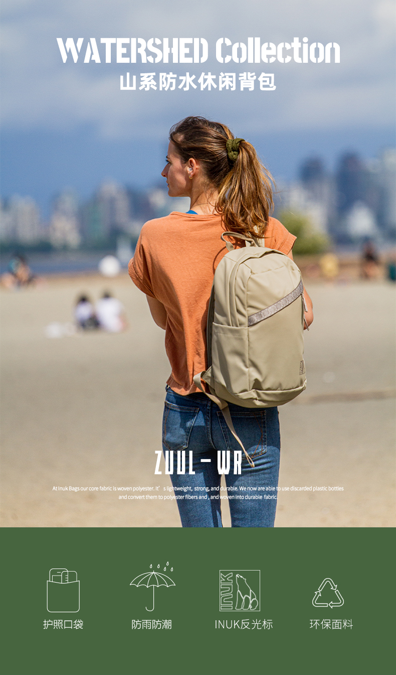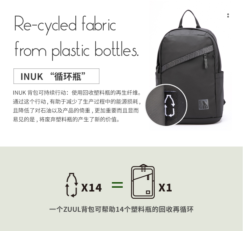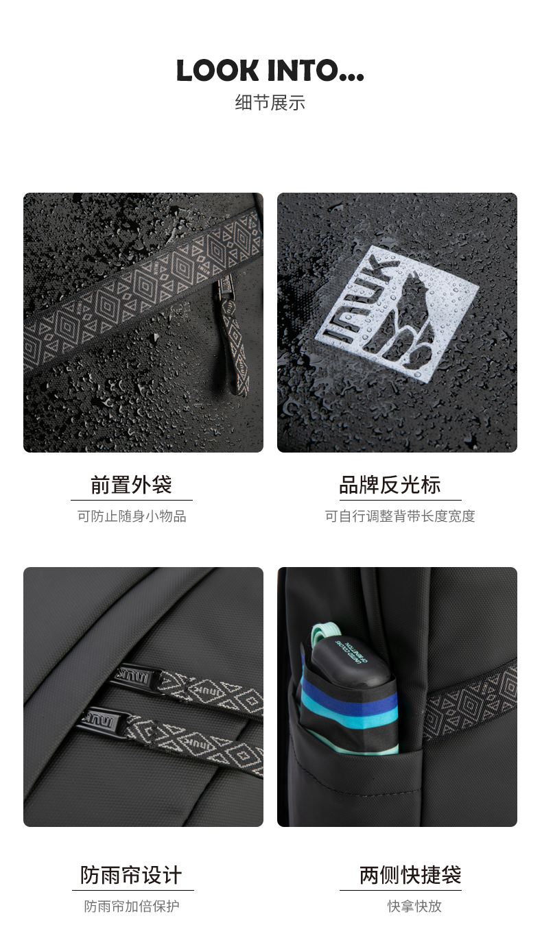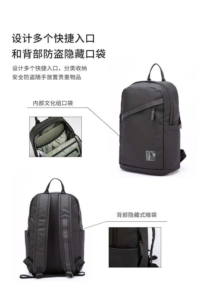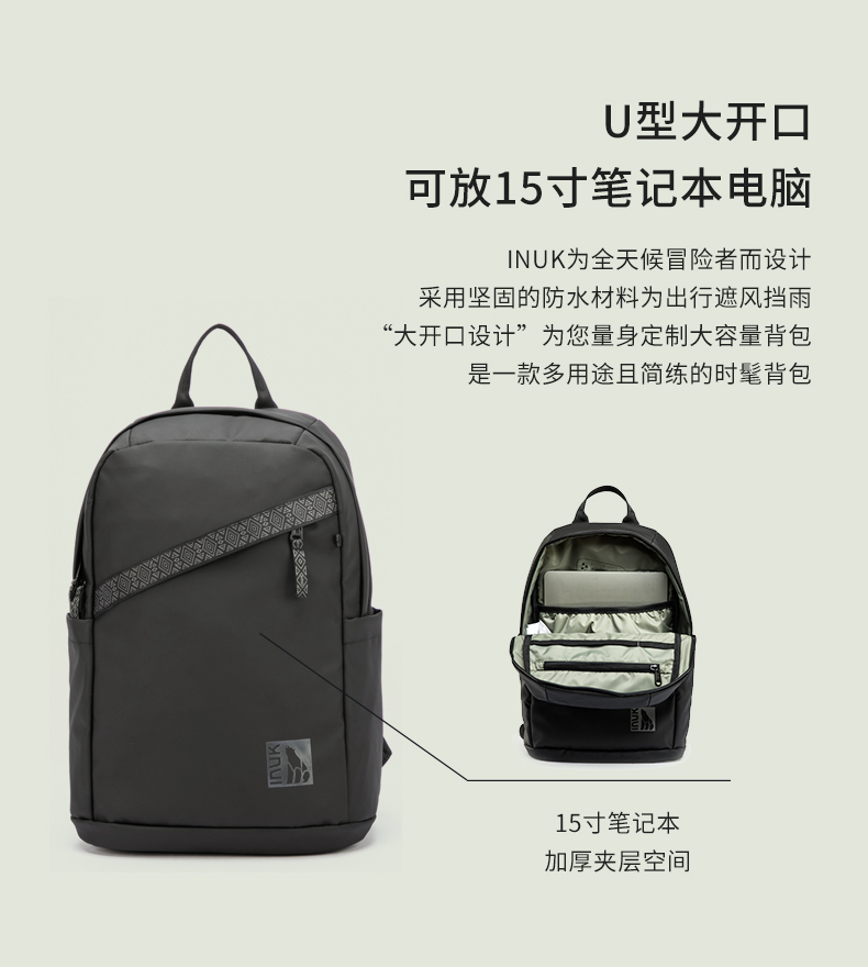 INUK新款酷黑休闲学生防水电脑双肩包大容量户外运动旅行背包男女