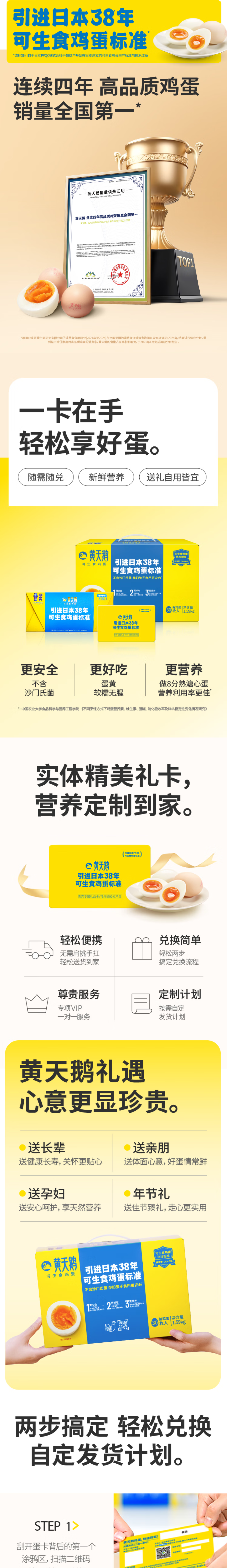 【黄天鹅】可食生鸡蛋30枚 月卡/季卡/年卡 礼品卡次卡轻松兑换精致礼盒送礼品