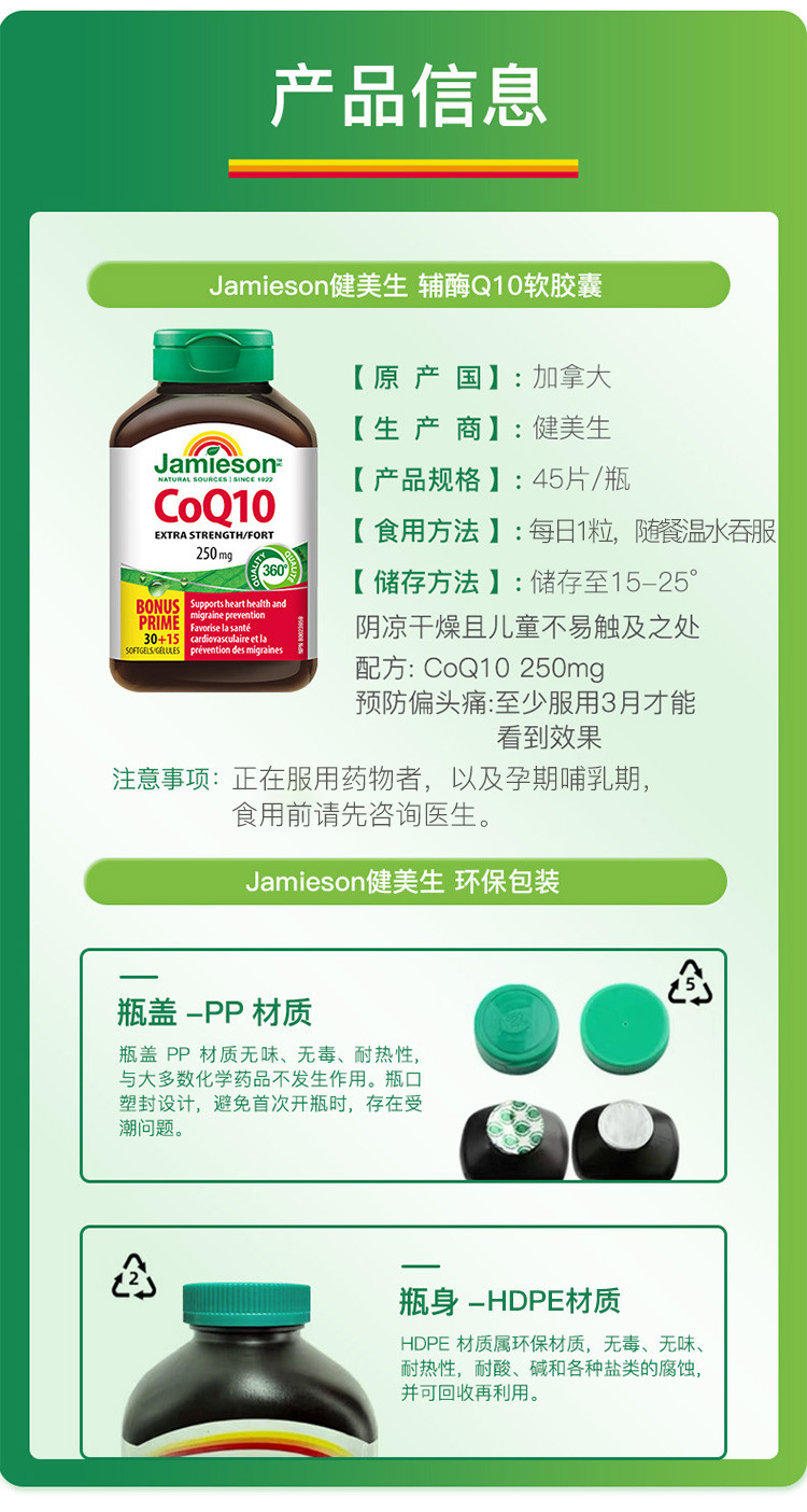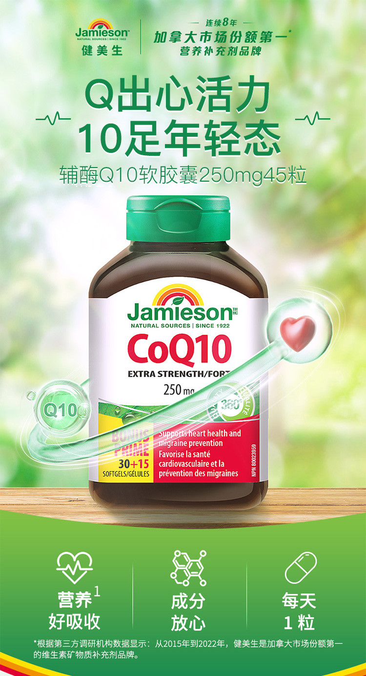 Jamieson 辅酶Q10软胶囊45粒250mg强化型辅酶q10心脏成人常备