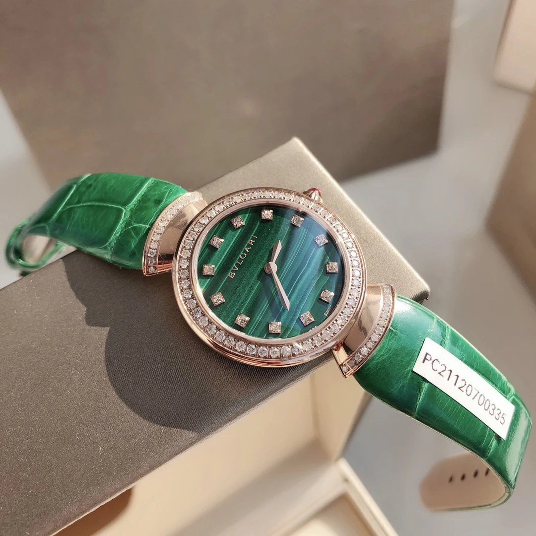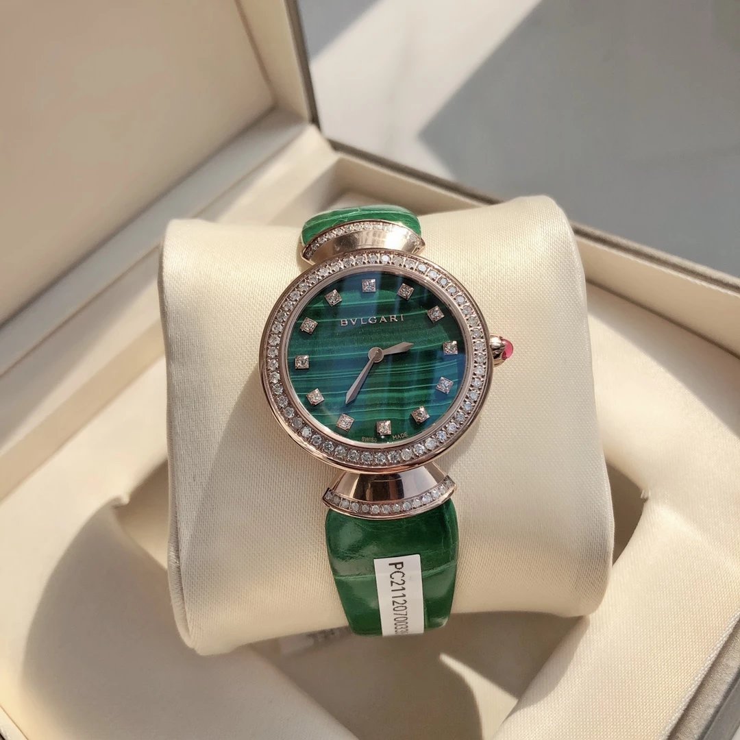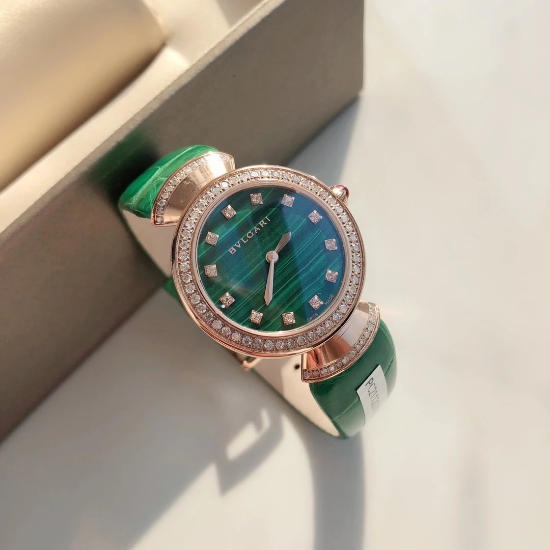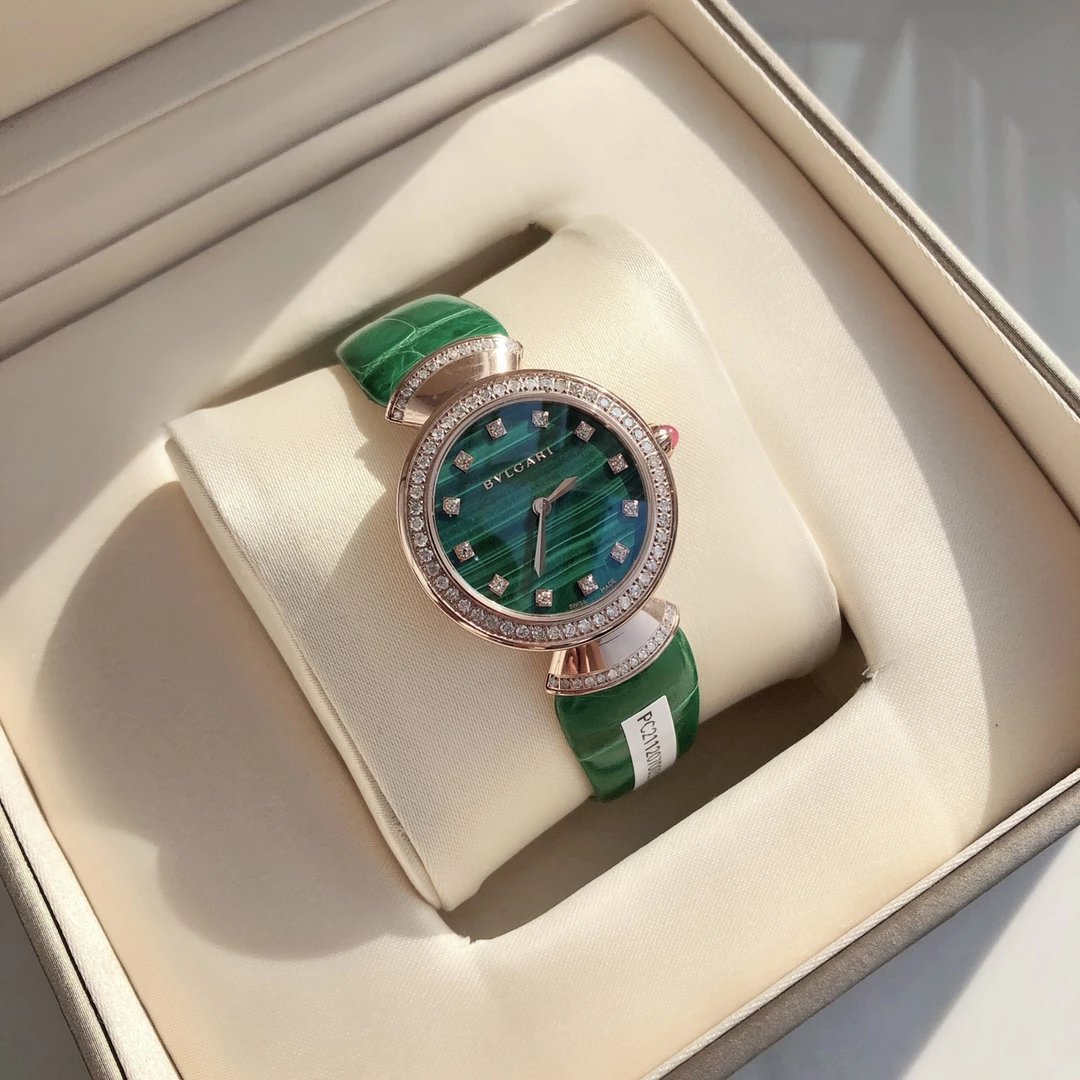 此系列腕表成为了意大利上层社会优雅女士的身份标识之一。表盘更是以稀少的天然石头孔雀石或青金石配12粒天然钻石展现宝格丽的珠宝品牌闪耀动人之姿