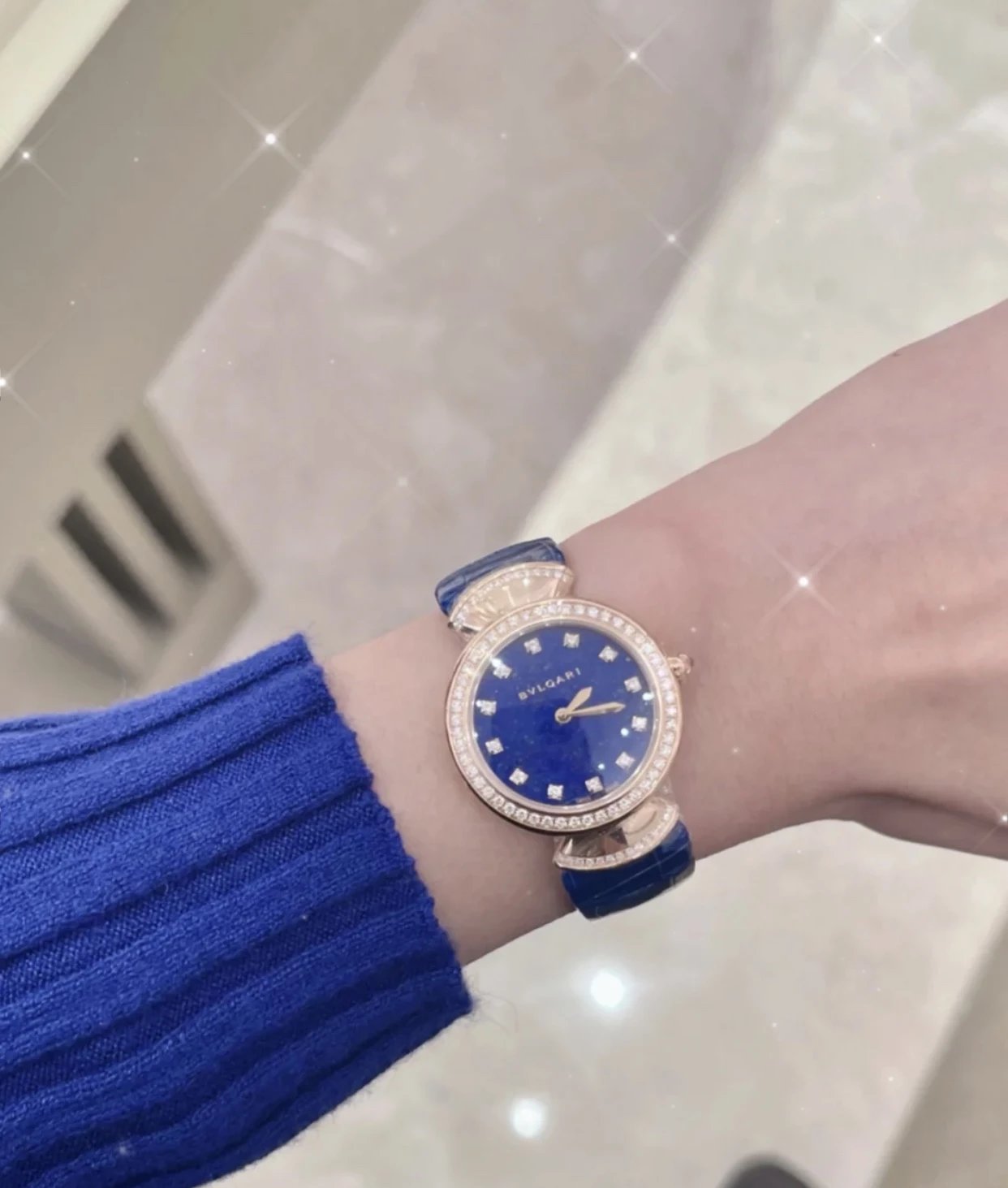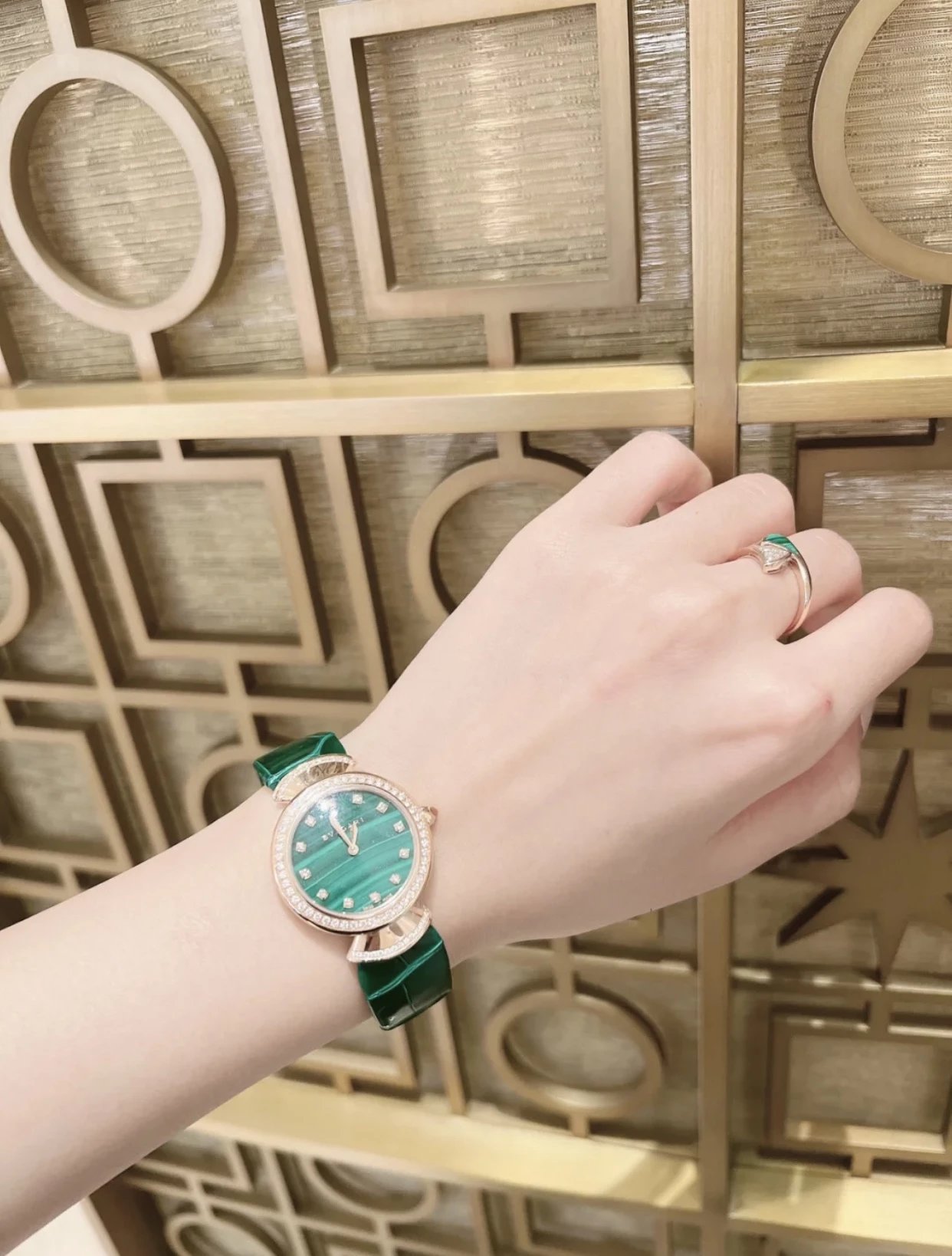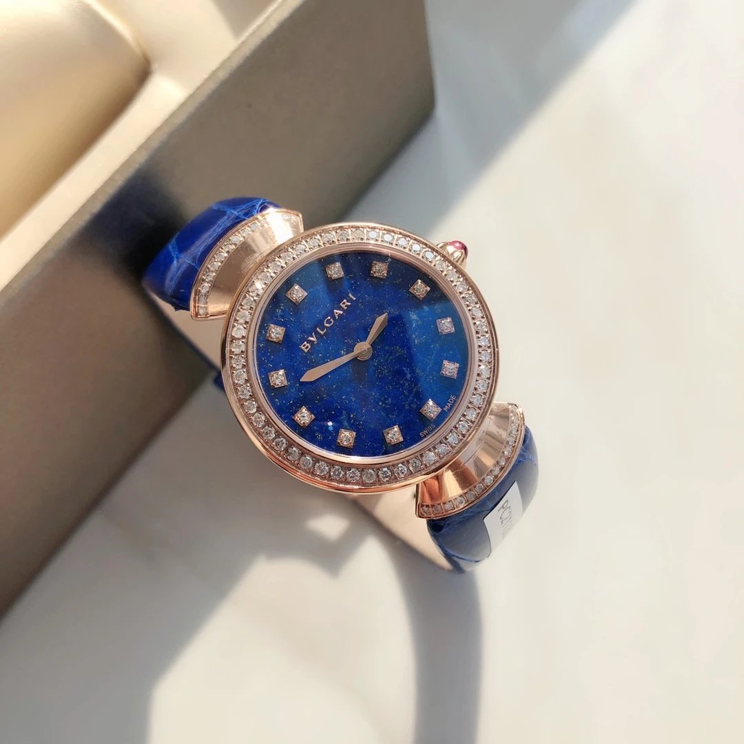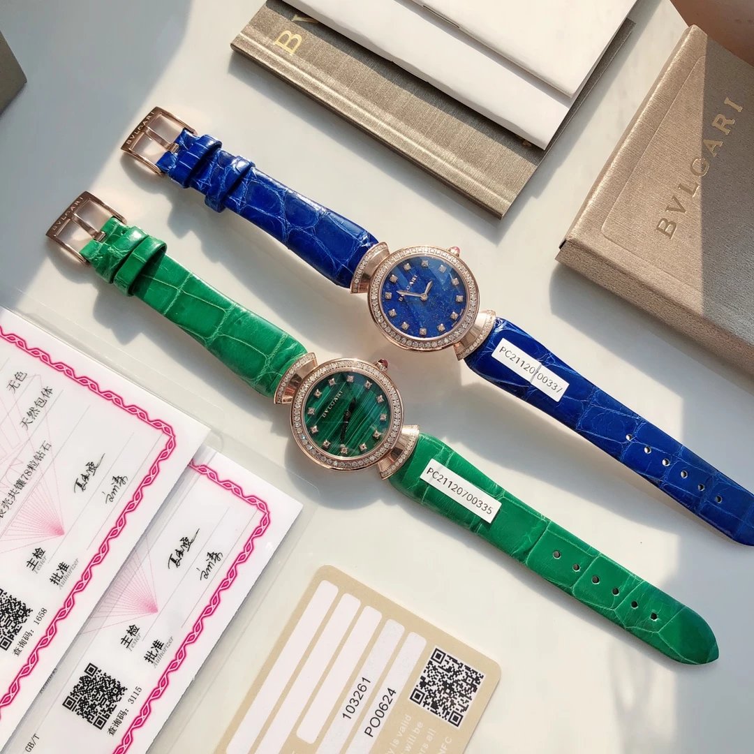此系列腕表成为了意大利上层社会优雅女士的身份标识之一。表盘更是以稀少的天然石头孔雀石或青金石配12粒天然钻石展现宝格丽的珠宝品牌闪耀动人之姿