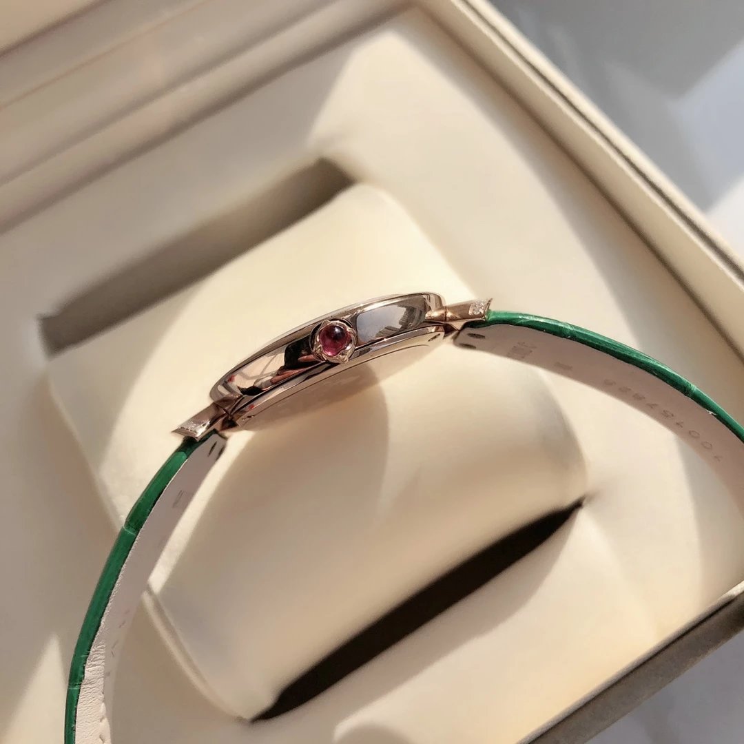 搭载正品一致的宝格丽专G原装机芯,非常稀缺,可专柜拆机验货,H3针高市场也无法订购,我们也仅此一批售完永无,内含钢片成型美洲鳄鱼皮表带,超薄设计,令佩戴更加的舒适,凸面蓝宝石玻璃,永不刮花,50米防水,配全套原包装,送礼自戴都非常合适!