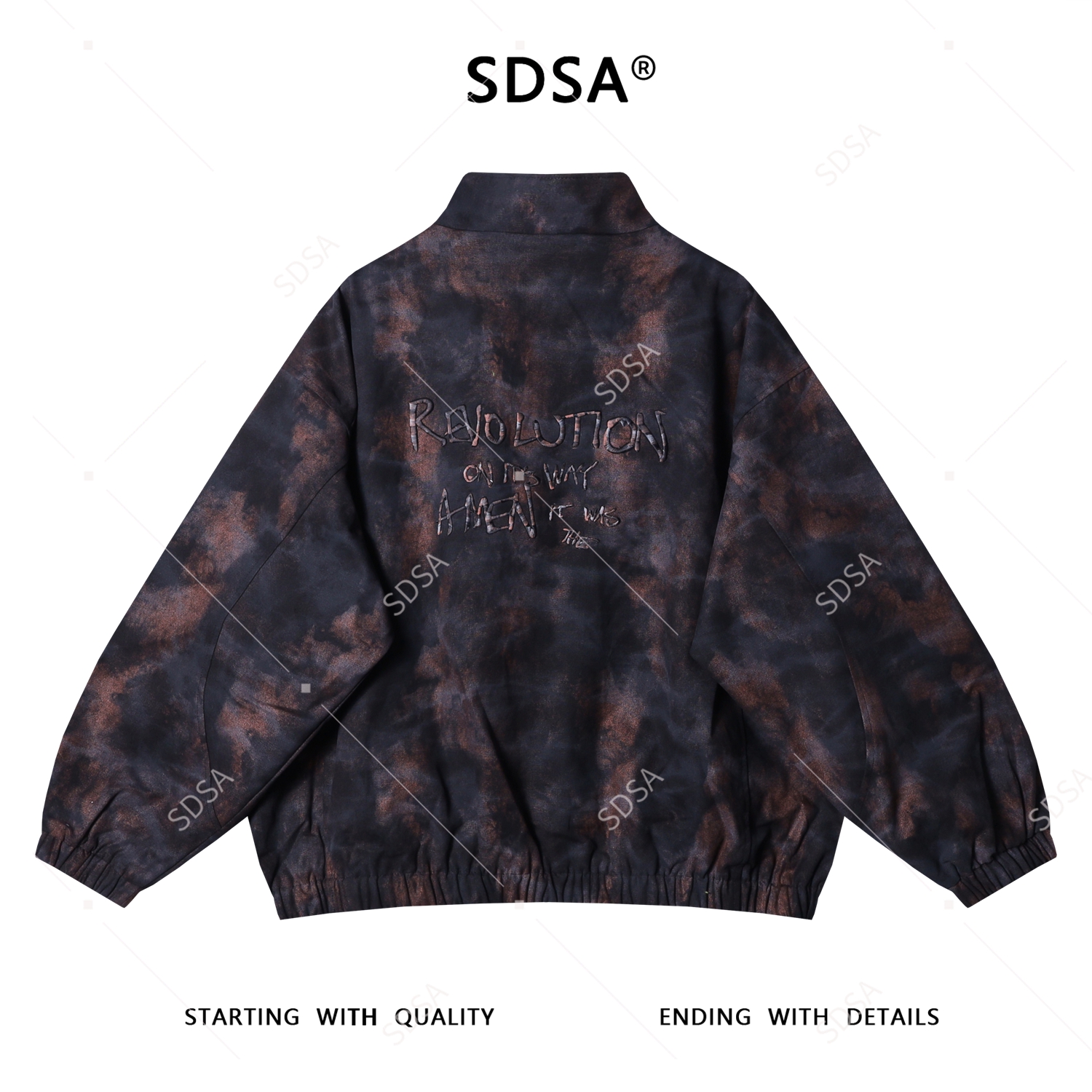SDSA男士秋冬新款痞帅男装潮牌扎染拉链立领夹克外套百搭时尚外套