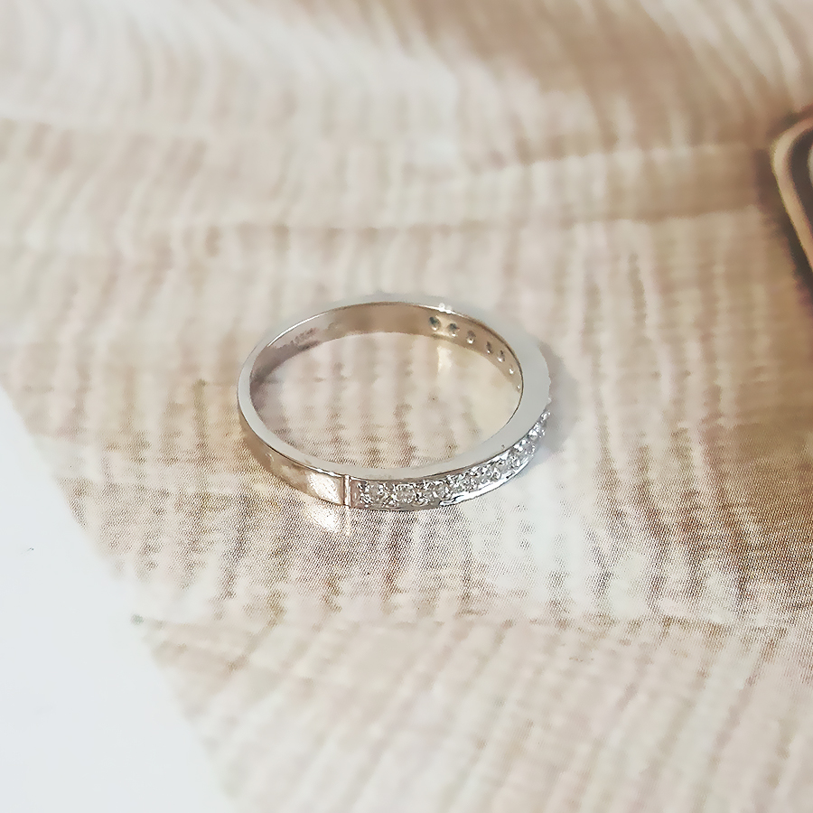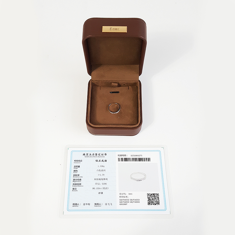【天然正品】AU750白金简约时尚排镶0.133克拉钻石戒指6号(戒圈可改)女士081025TJ11现售价:1580特价