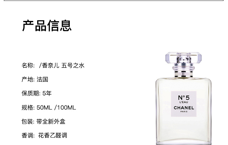 CHANEL香奈儿5号系列女士清新淡香水100ml(SLB)