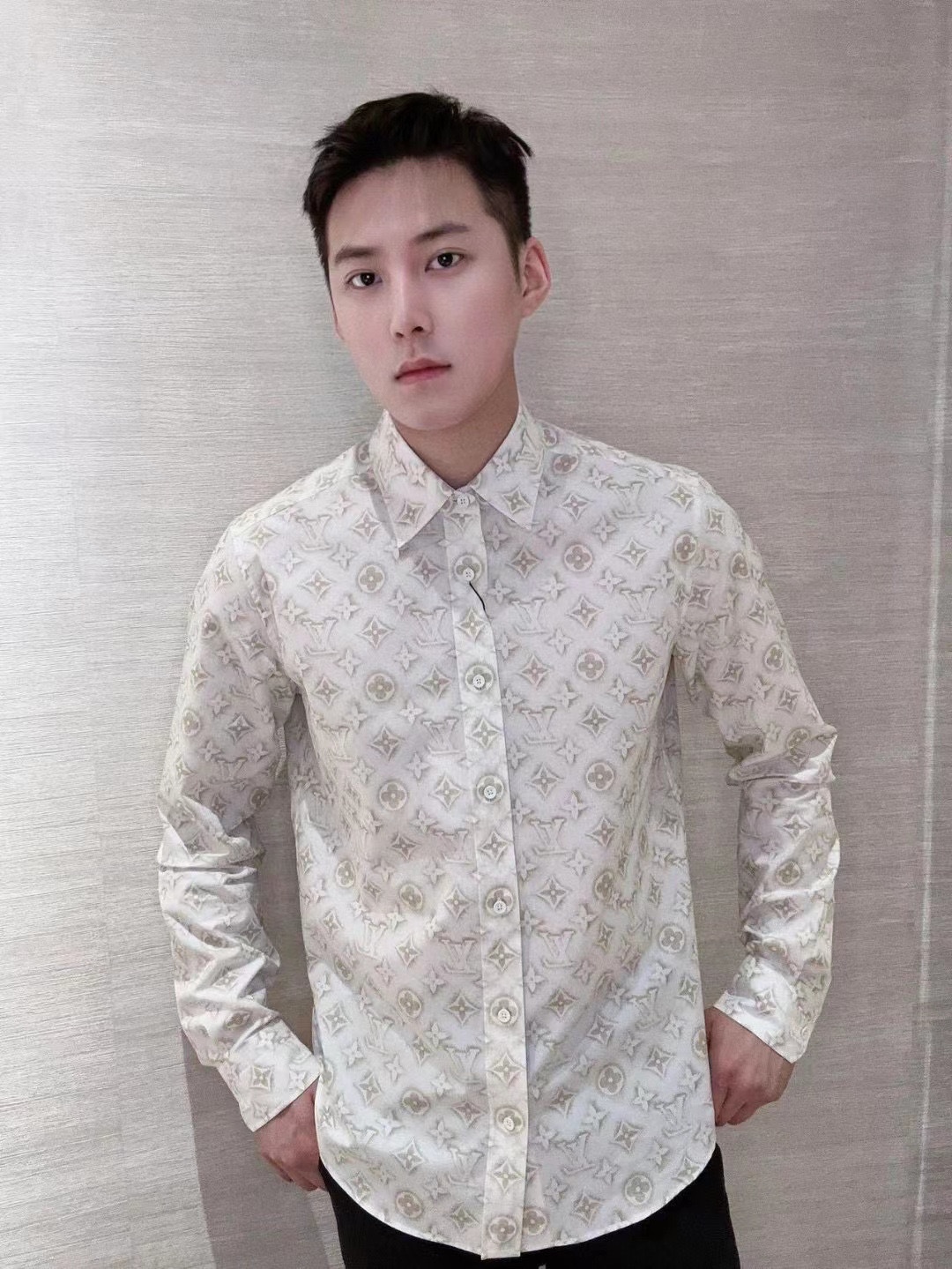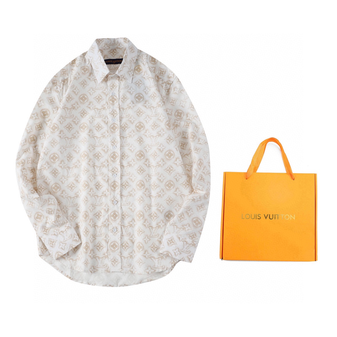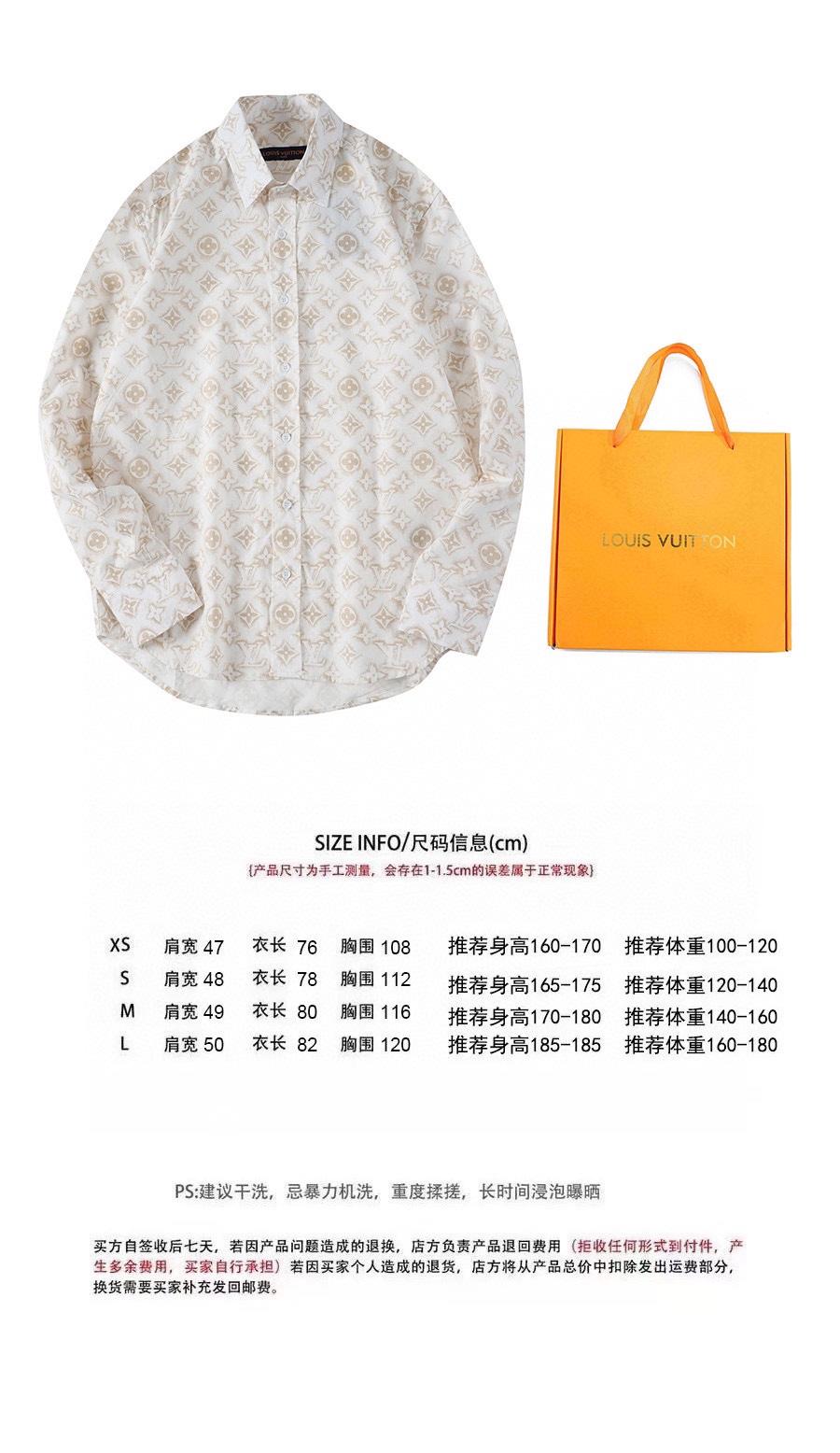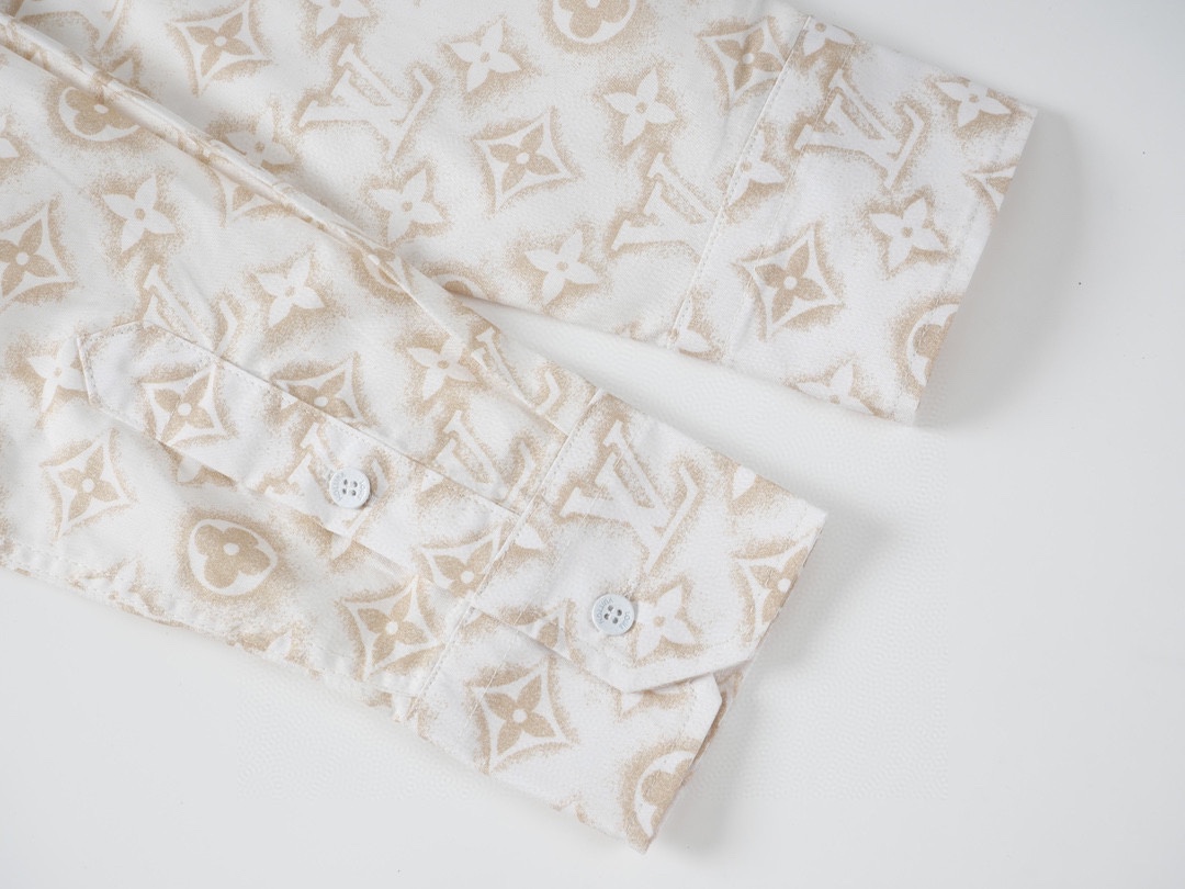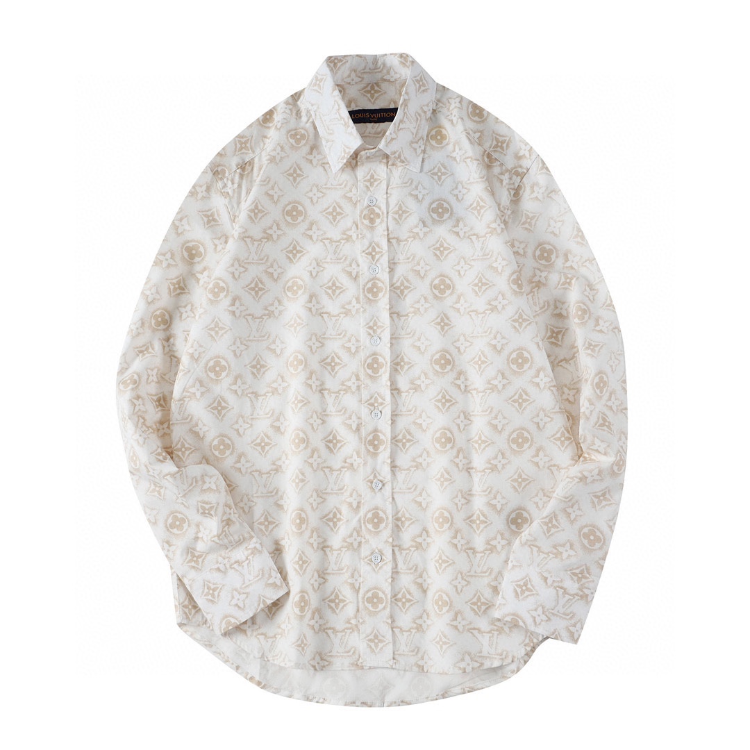1V 2023新款 做旧满印白衬衫 今年最新款衬衫 做旧质感的满印特色配搭基础衬衫 面料采用全棉梭织衬衫布 手感顺滑舒适 上身修饰身材